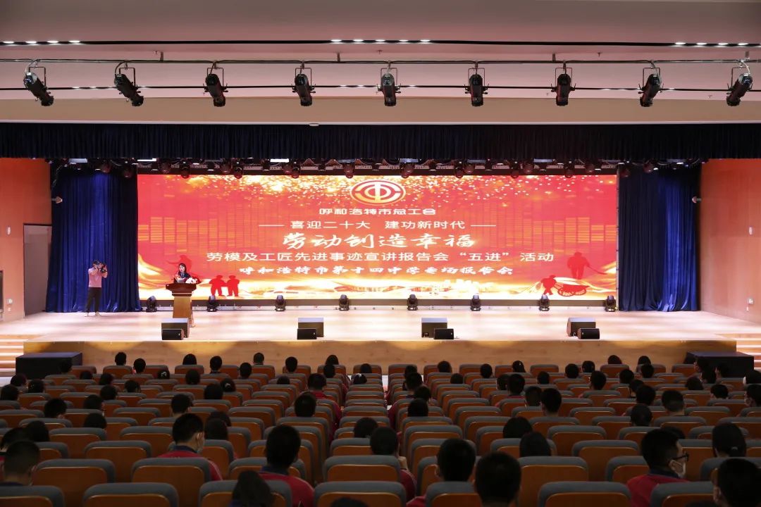 为进一步在全社会营造“劳动光荣、知识崇高、人才宝贵、创造伟大”的社会风尚。5月25日,呼和浩特市总工会“喜迎二十大 建功新时代——劳动创造幸福”劳模及工匠先进事迹宣讲报告会“五进”活动走进呼和浩特市第十四中学,400余名教职工和学生现场聆听了宣讲。