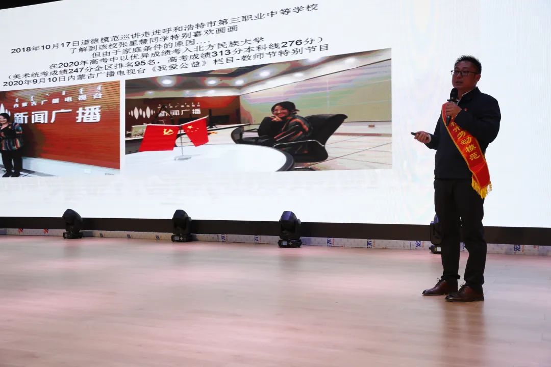 本次报告会上主讲的两名宣讲团成员均为呼和浩特市级劳动模范,分别是呼和浩特市第三公共汽车公司车队长苏日娅和呼和浩特市赛罕区艺之苑培训学校党支部书记、校长付兵兵。两位劳模分享了他们在平凡的岗位上不平凡的劳动故事,用质朴生动的语言为师生们阐述了平凡岗位中的伟大,向大家传递了执着专注、精益求精、追求卓越的劳动精神、工匠精神,激励着师生崇尚先进、学习先进、争当先进,让“劳动精神”厚植校园,让“劳模精神”在广大师生中生根发芽。