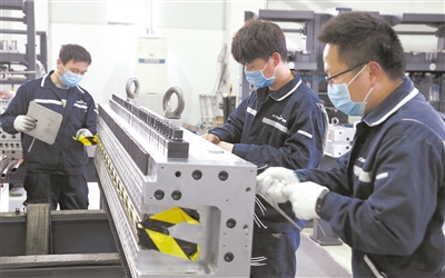 陈福蓬介绍,集团旗下的浙江精诚模具机械有限公司深耕“模头”技术20多年,自主研发的多项新产品填补了行业缺口,产品出口到30多个国家,被评为国家级专精特新“小巨人”企业。随着市场需求扩容,2020年,公司启动了生产“熔喷非织造布挤出模头、JCR—1600mm”这一新项目。