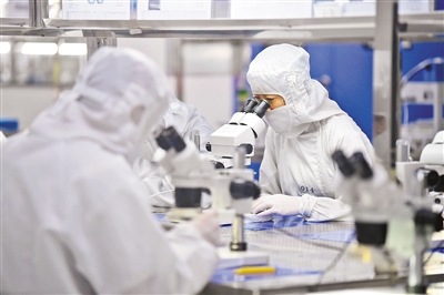 工人在包头江馨微电机科技有限公司数字化百级无尘车间赶制配套5G手机产品的音圈马达。
