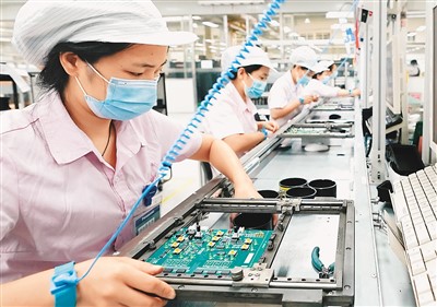 今年以来,重庆市铜梁区通过密集出台涉及工业企业发展的金融支持、用工保障、科技创新、人才引进等方面系列措施,助企纾困,促进区域企业健康、可持续发展。图为重庆精鸿益科技股份有限公司工作人员在生产车间内作业。
