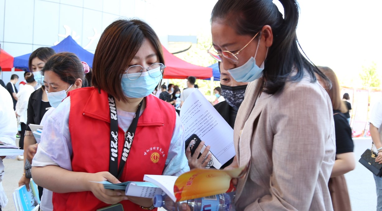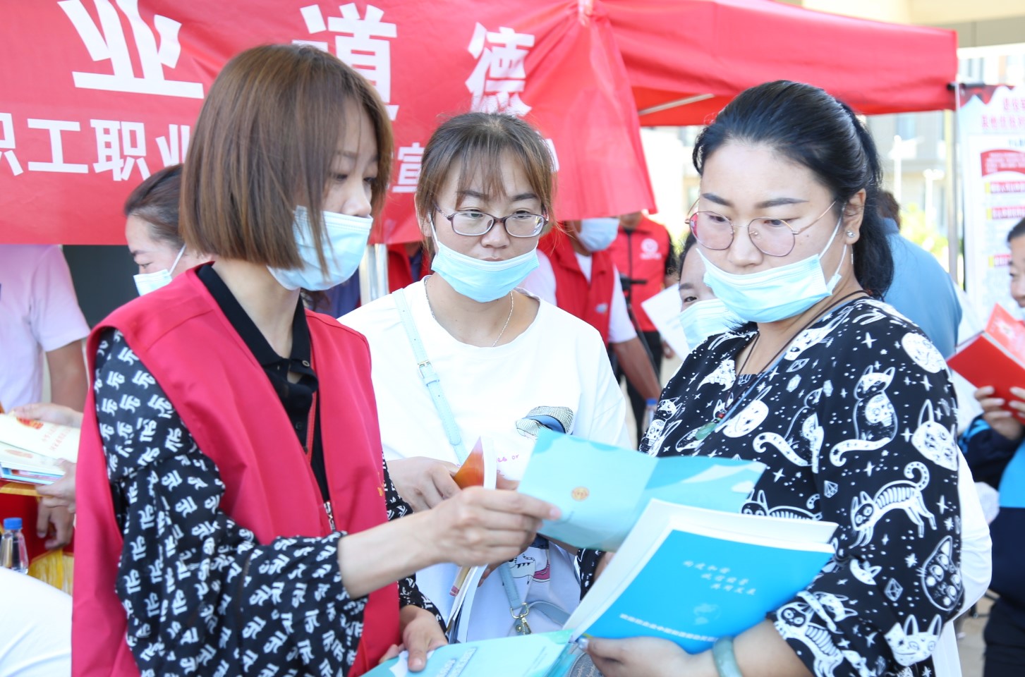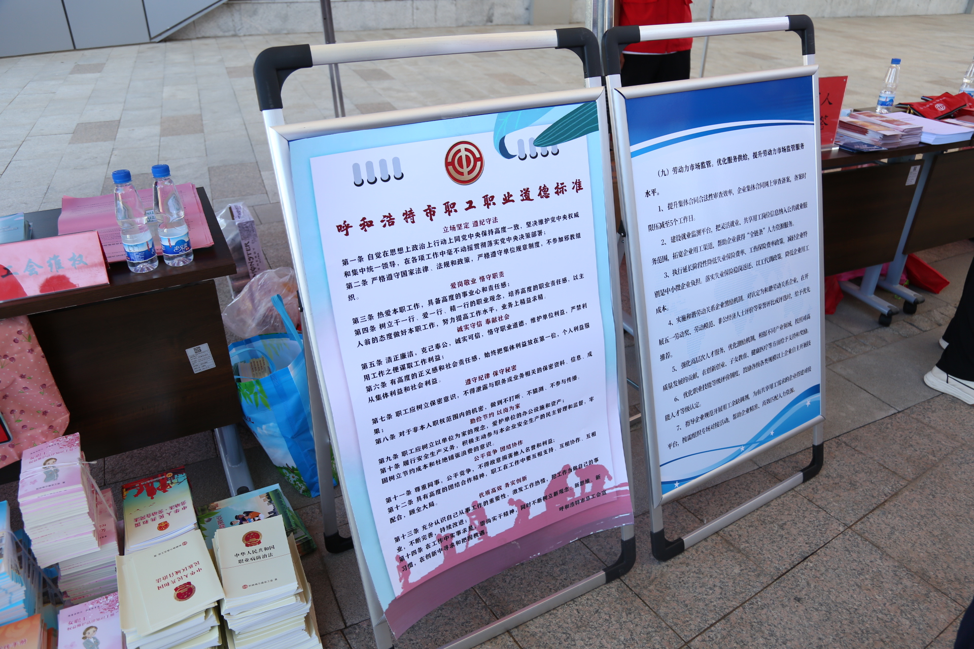 6月24日,在和林格尔新区召开的“手拉手”人社惠企政策专项宣传暨夏季民营企业招聘会上,市总工会联合和林县总工会设立了工会业务宣传展位,并开展了“劳动创造幸福 践行职业道德”宣传活动。