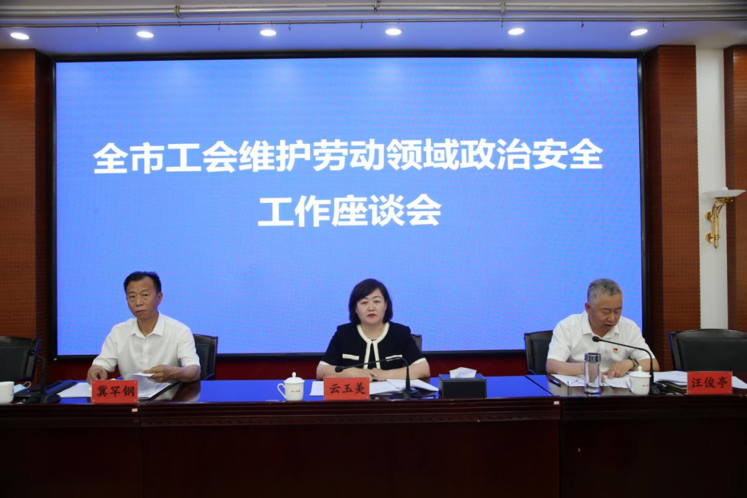 6月24日,呼和浩特市总工会召开全市工会维护劳动领域政治安全工作座谈会。会议坚持以习近平新时代中国特色社会主义思想为指导,深入学习贯彻总体国家安全观,学习传达了内蒙古自治区人大常委会副主任、总工会主席和彦苓同志在全区工会维护劳动领域政治安全工作座谈会上的讲话精神,并对全市维护劳动领域政治安全工作进行了安排部署。就当前和今后一个时期全市各级工会构建落实“五个坚决”要求长效机制,进一步做好维护劳动领域政治安全工作作出部署。市人大常委会副主任、总工会主席云玉美出席会议并讲话。