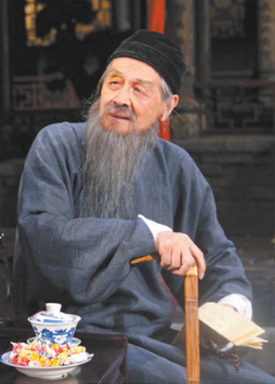 蓝天野在话剧《家》中饰演冯乐山的剧照。
