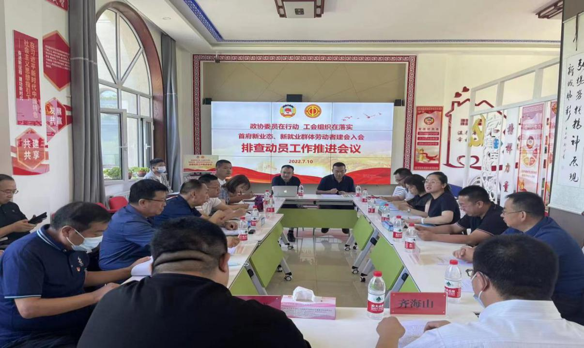 7月10日,首府新业态、新就业群体劳动者建会入会排查动员工作推进会议在新城区劳动者港湾召开,市政协常委、市总工会党组成员、副主席云娜,市总工会专项工作专班工作人员和市四区总工会分管领导和工作人员参加会议,会议邀请市政协工会界政协委员参加会议。