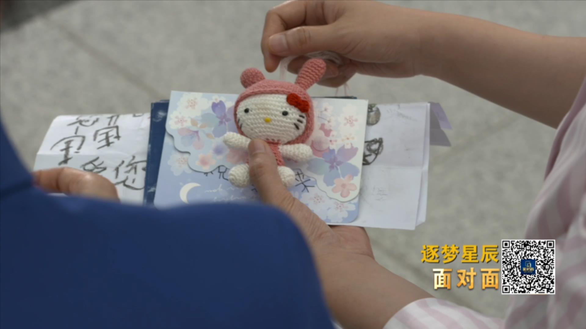 王亚平:其实在机场第一眼看到女儿的时候,我有一种既熟悉又陌生的感觉。摘星星是任务之前宝宝交给我的任务,也是我对她的承诺。这上面是有字的,可以看到平安、快乐、圆梦、胜利、幸福。