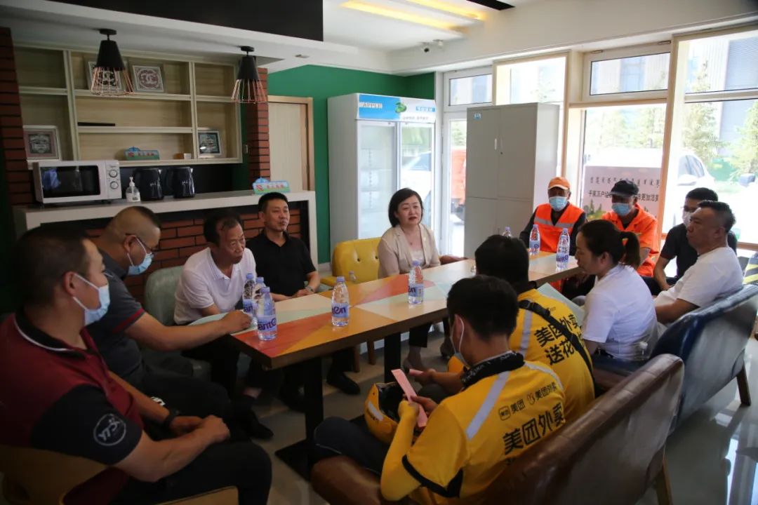 云玉美一行先后实地查看详细了解站点内的软硬件服务,与户外劳动者代表进行了亲切的交谈,征集了提升多元化服务建议,并现场慰问户外劳动者代表。
