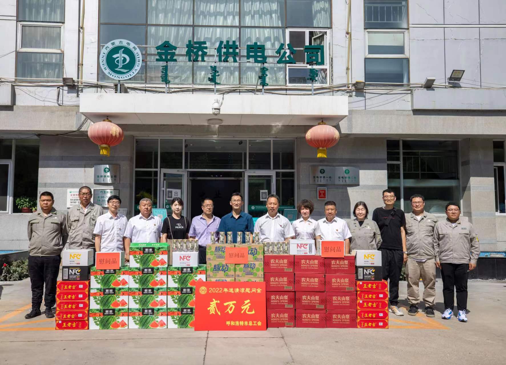 7月13日,呼市能源化工机械制造工会一行来到呼和浩特供电公司金桥供电分公司,慰问常年奋战在电力一线的职工,把送清凉的慰问品与工会组织的关怀送到职工手中。