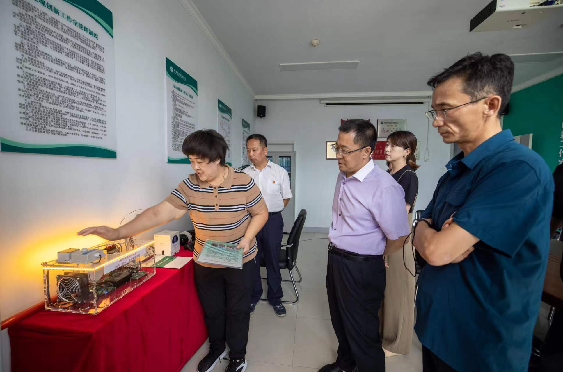 随后,慰问组一行来到运之魂创新工作室进行参观考察,侯海文说企业要重视职工创新,紧扣产业链部署创新链,不断强化职工创新成果转化应用,鼓励职工多开展创新活动,加强创新工作室的建设工作,市总工会将全力支持企业职工创新工作。