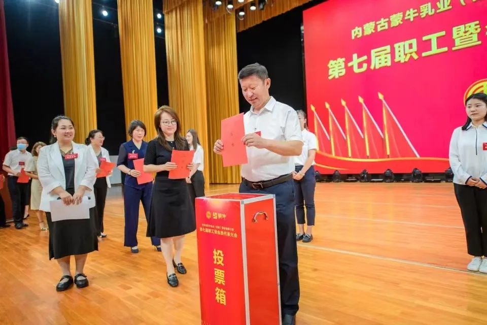 7月13日,内蒙古蒙牛乳业(集团)股份有限公司第七届职工暨会员代表大会隆重召开。中粮集团党组成员、副总裁王新东,呼和浩特市人大常委会副主任、总工会主席云玉美,中粮集团党群工作部部长高翔,和林格尔县人大常委会副主任、总工会主席蒲喜万,和林格尔县总工会党组书记伊俊文,蒙牛乳业总裁卢敏放,蒙牛乳业党委书记王燕以及来自全国352名正式代表共同参会,会议全面总结2021年各项工作并对2022年工作进行安排部署。