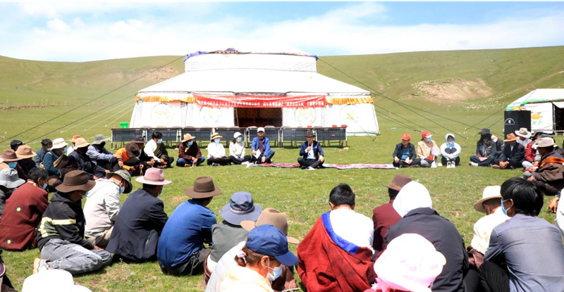 蓝天白云下,草原暗花香,刚察草原迎来了一年中最美的季节。6月下旬的一天,达娃达杰期待的政策宣讲来了——一场以“感恩奋进有我”为主题的党日活动在果洛藏贡麻村后山的草场上举行,活动同时对村里深入推进精神文明建设、民族团结巩固、公序良俗推动等方面涌现出的优秀个人和集体进行了表彰,还组织了歌舞表演,赢得了现场群众的阵阵掌声。