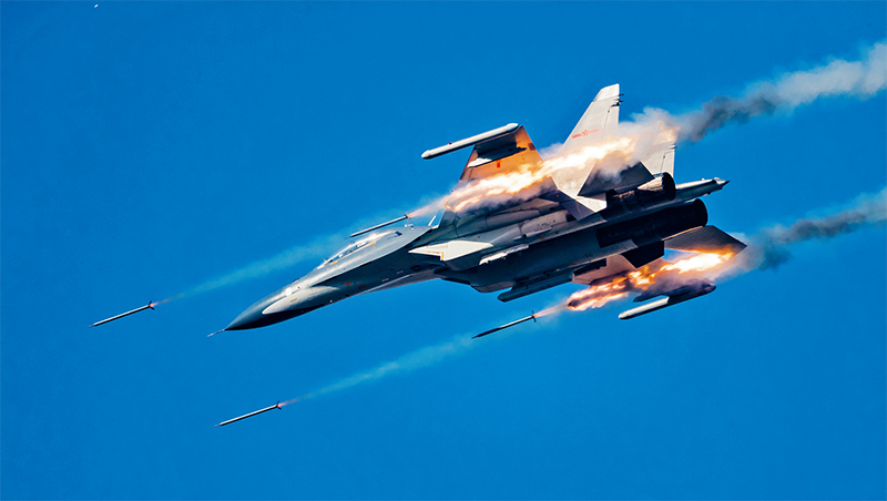 党的十八大以来,人民军队全面推进军事训练转型升级,练就能战善战的精兵劲旅。图为2018年4月24日,参加空军“金飞镖-2018”比赛的战机在进行实弹攻击。 新华社发 杨盼/摄