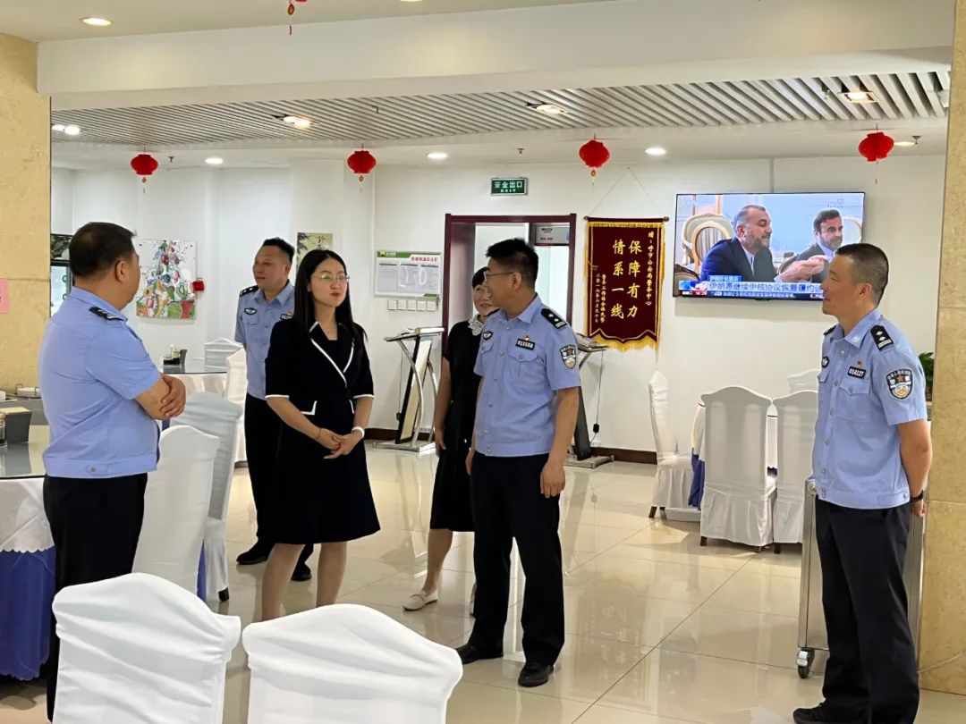 之后来到市公安局反诈中心观摩了反诈工作,并先后参观了职工健身房、职工食堂、职工理发室、洗衣房、惠警超市,期间云娜详细了解了公安干警的工作及生活,询问干警们生活和工作中出现的困难,对市公安局职工阵地建设给予了高度认可,同时对公安干警的辛勤工作也给予了充分肯定,并赞扬公安干警在忠诚履职维护社会稳定、打击违法犯罪、服务人民群众、打造“五宜城市”方面作出了突出贡献,同时也叮嘱干警们注意防暑、保重身体,做到劳逸结合,保护自身安全,以更加饱满的精神状态完成好各项工作任务。