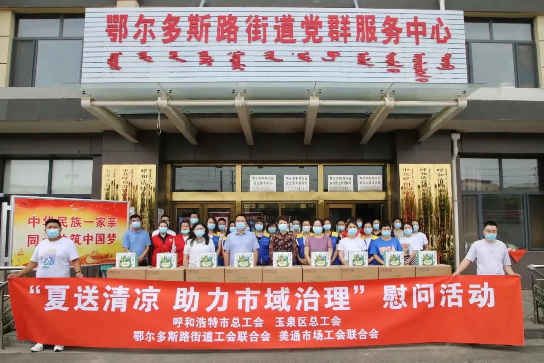 基层网格员是基层治理的重要力量,活动中,市总工会为高温酷暑下坚守岗位的职工送去了冰糖、绿豆和菊花茶等防暑降温用品。对他们为首府市域治理、创建文明城市和疫苗接种的辛苦付出表示衷心的感谢,并嘱咐大家在疫情防控期间做好个人防护,高温天气注意防暑降温,努力为建设“美丽青城 草原都市”做出更大贡献!