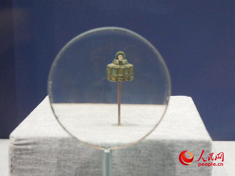 展览中展出的错金干支仪。人民网 韦衍行摄