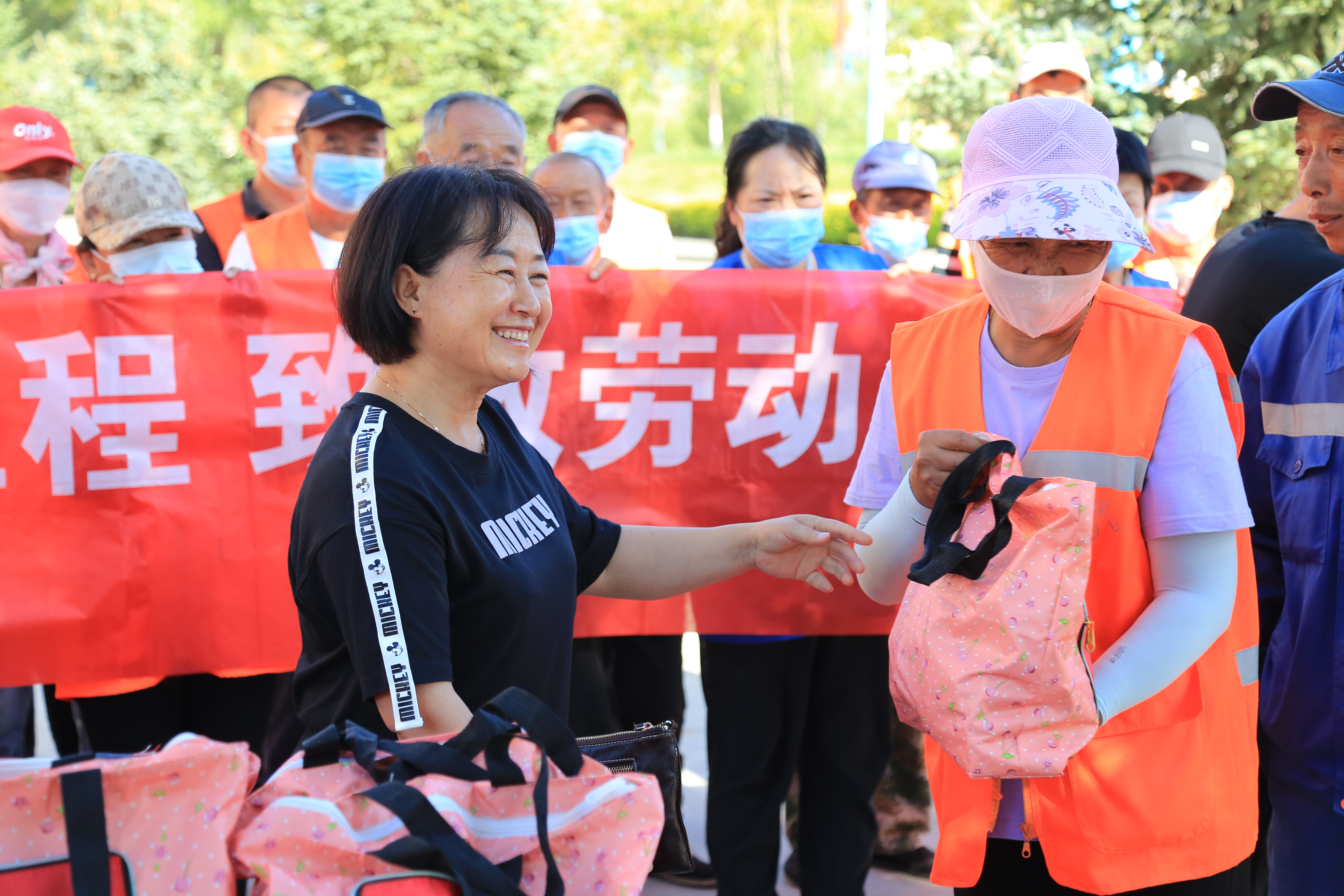 慰问组为349名环卫工人发放了清凉大礼包,对坚守在环卫一线的环卫工人表达了敬意,感谢他们在炎炎烈日下战高温、斗酷暑,始终坚守在一线岗位,为全县的人居环境提升和文明创建付出了辛勤的劳动,并叮嘱他们在高温天气要合理安排工作时间,尽量避开高温时段劳作,注意防暑降温,确保自身健康安全。