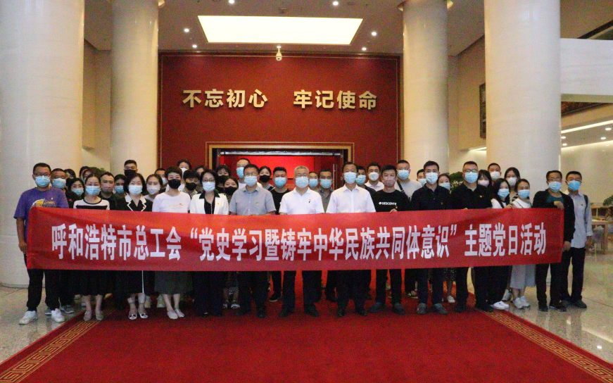 为持续深化党史学习教育,进一步铸牢中华民族共同体意识,引导机关全体党员干部不断增强对伟大祖国、中华民族、中华文化、中国共产党、中国特色社会主义的认同,以实际行动迎接党的二十大胜利召开,2022年8月16日,呼和浩特市总工会组织全体党员干部到内蒙古展览馆开展“党史学习暨铸牢中华民族共同体意识”主题党日活动,参观“中华颂”系列展览,市总工会党组书记、副主席汪俊亭、党组成员、副主席冀罕钢、云娜出席活动。
