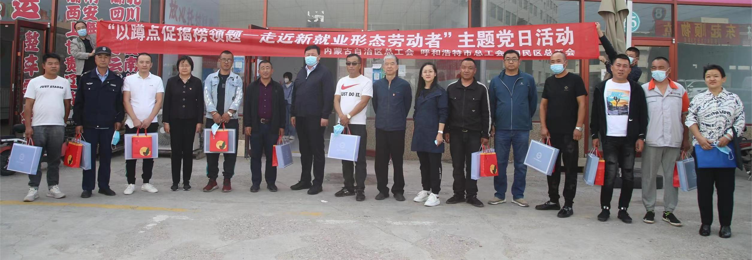 8月29日,自治区总工会基层工作部党支部与呼和浩特市总工会机关第三党支部、回民区总工会党支部联合开展“以蹲点促揭榜领题—走进新就业形态劳动者”主题党日活动。自治区总工会副主席赵大军、自治区总工会二级巡视员王俊、自治区总工会基层部部长常丽武,呼和浩特市总工会党组成员、副主席云娜,回民区政协副主席、总工会主席刘鲲等近10余名党员干部参加活动。