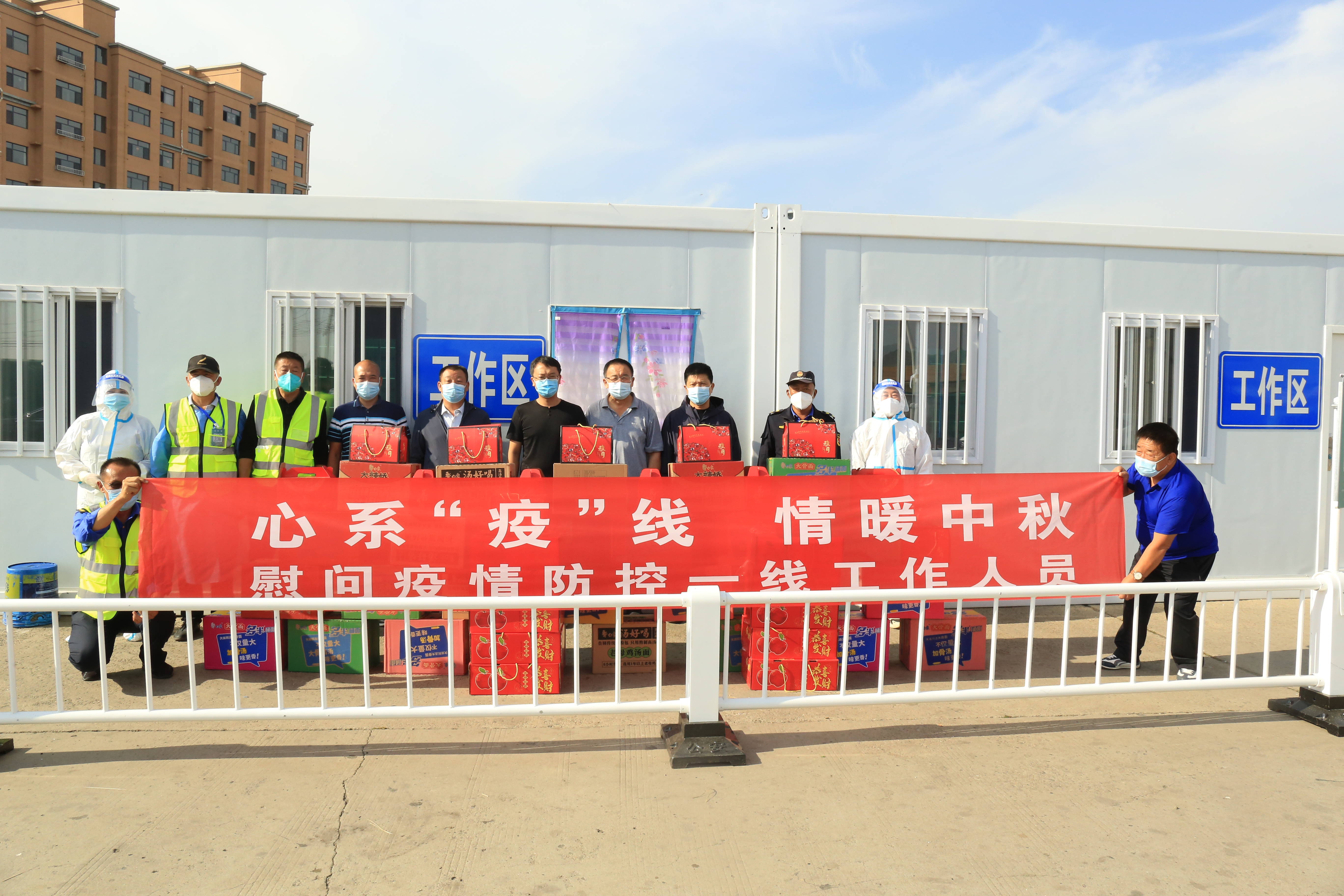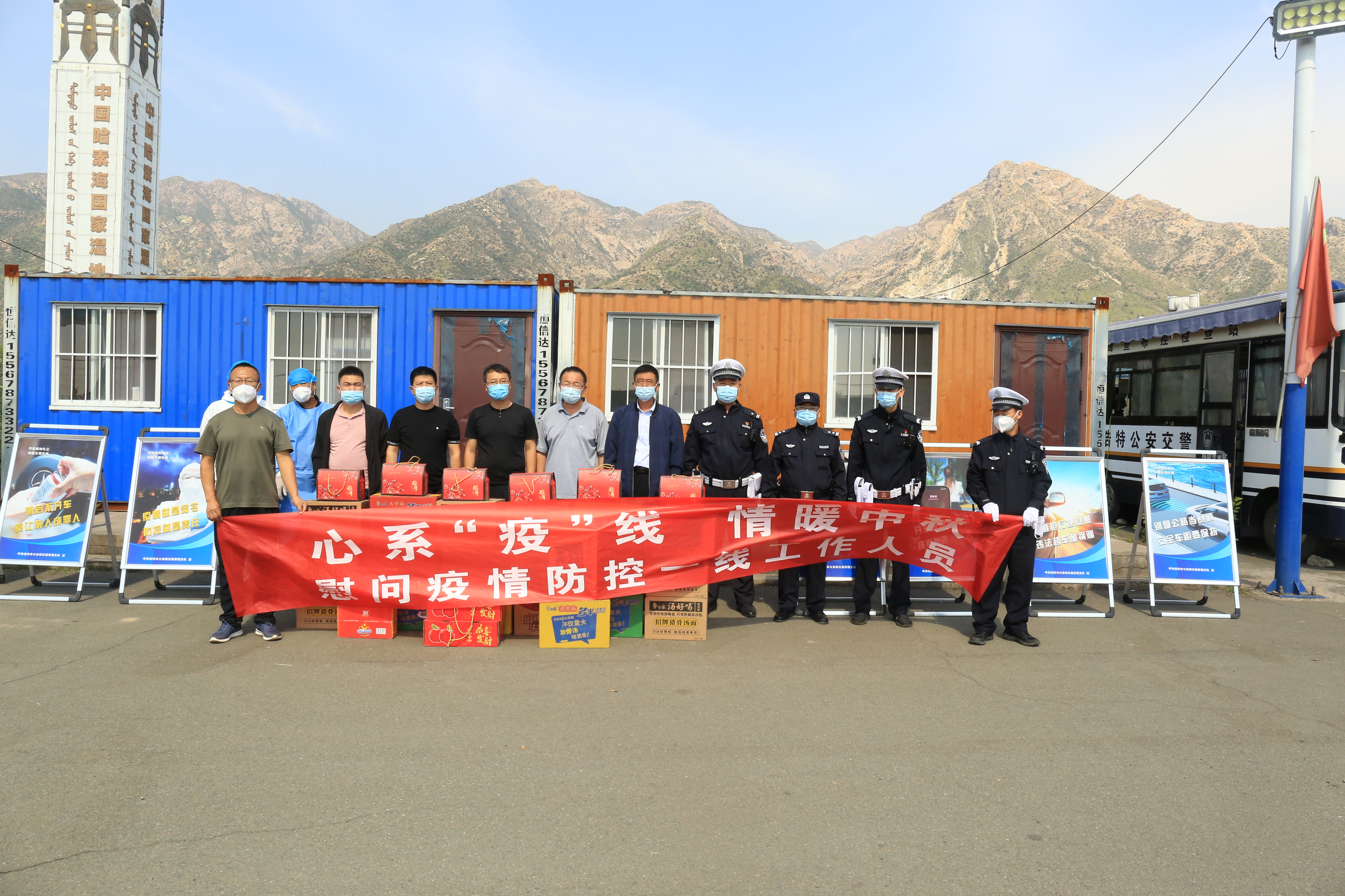 本次活动共为呼和浩特西、金山开发区、毕克齐镇、察素齐镇、哈素海、110国道、火车站等疫情防控点送去价值2.1万元的月饼、水果、方便面、矿泉水等慰问品。