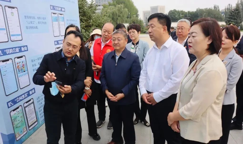 与会领导共同开启线上企业建会、职工入会的线上通道和普惠季活动,现场指导新就业形态劳动者登录小程序领取普惠礼品。