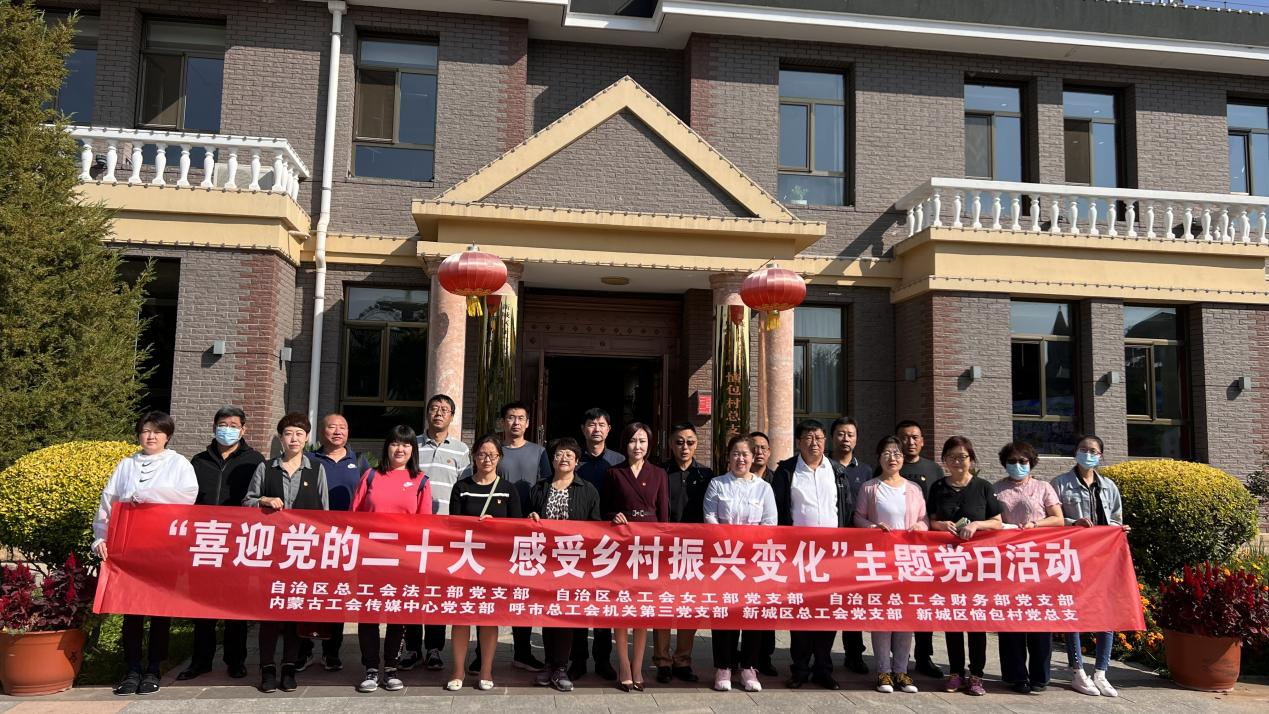 为庆祝中国共产党成立101周年,喜迎党的二十大,进一步夯实党史学习教育成果,引导党员干部进一步坚定理想信念、牢记初心使命,传承乡村文化。9月14日,新城区总工会党支部联合自治区总工会法律工作部党支部、女工部党支部、财务部党支部、传媒中心党支部,呼市总工会机关第三党支部、新城区恼包村党总支共26名党员开展了“喜迎党的二十大 感受乡村振兴变化”主题党日活动。