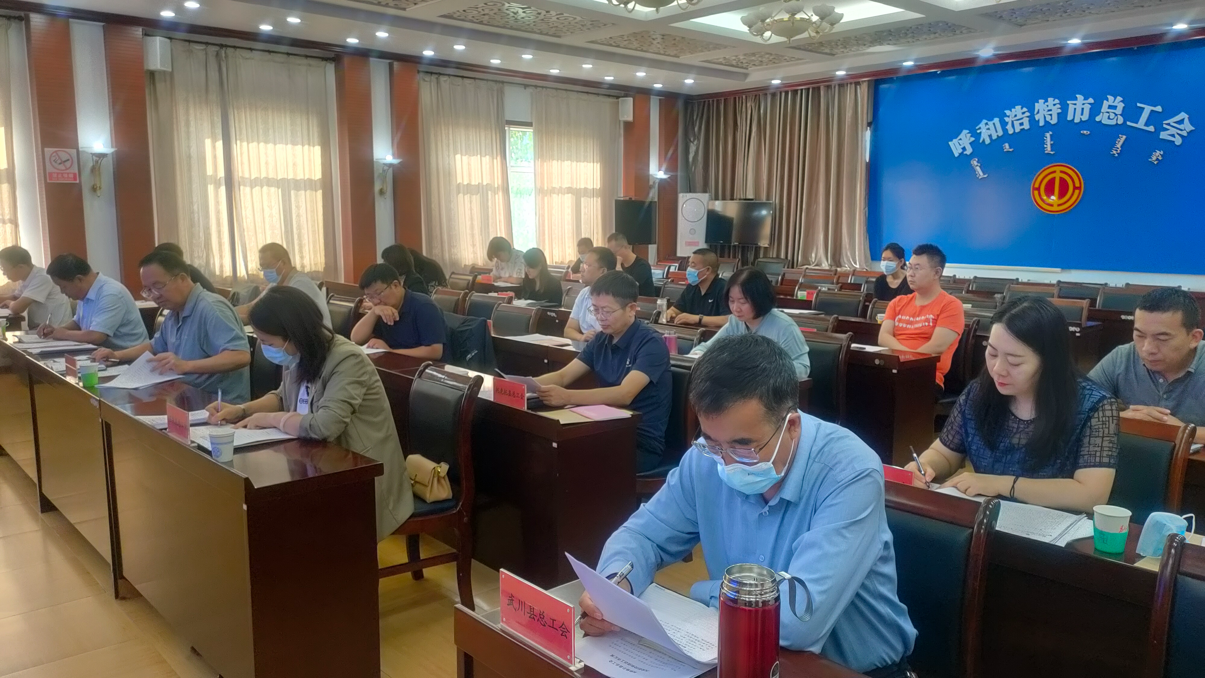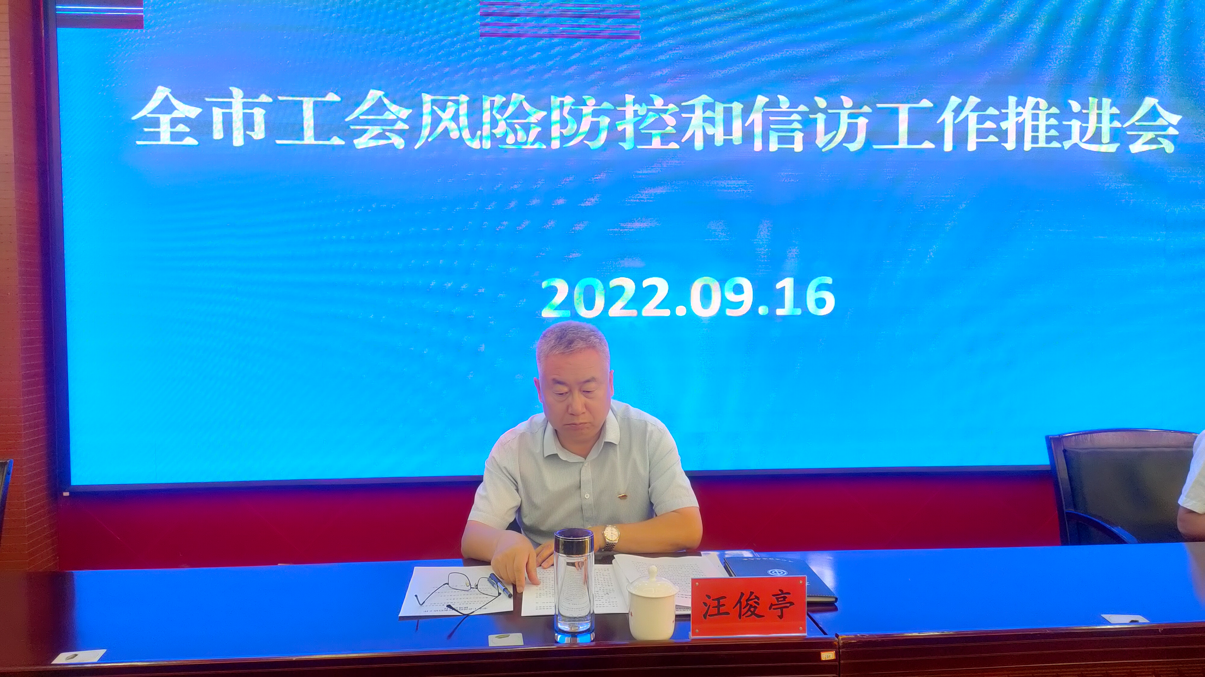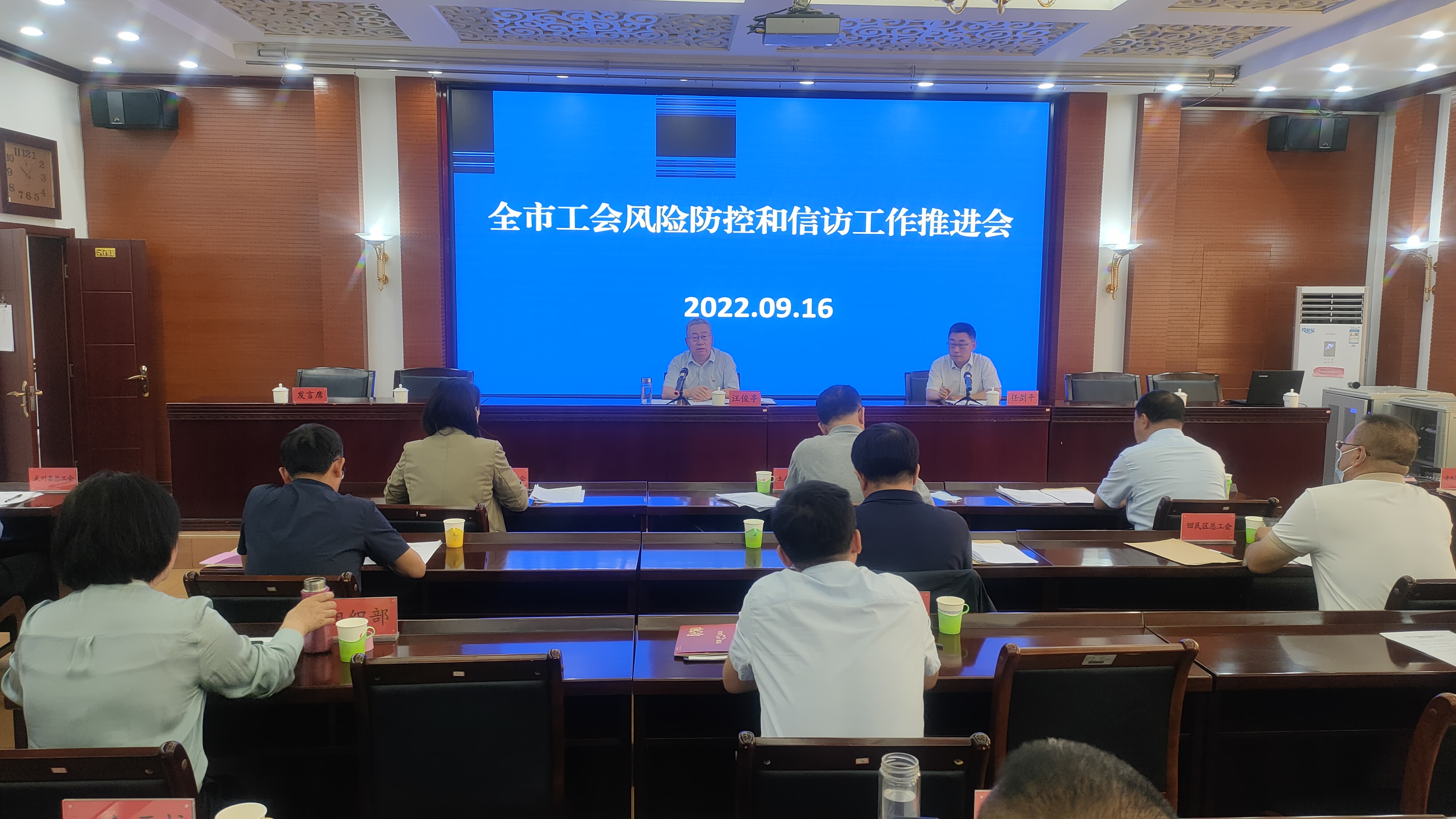 为紧紧围绕服务保障党的二十大胜利召开这条主线,落实全区工会风险防控和信访工作专题调度暨“旗县级工会加强年”专项工作启动会会议精神,9月16日,呼市总工会召开全市工会风险防控和信访工作推进会。市总工会党组书记、副主席汪俊亭出席会议并讲话,法工部部长任剑平主持会议,各旗县区总工会党组书记、经济技术开发区工会主席,市总各部门负责人、各驻会产业工会主席、各直属事业单位负责人共32人参会。