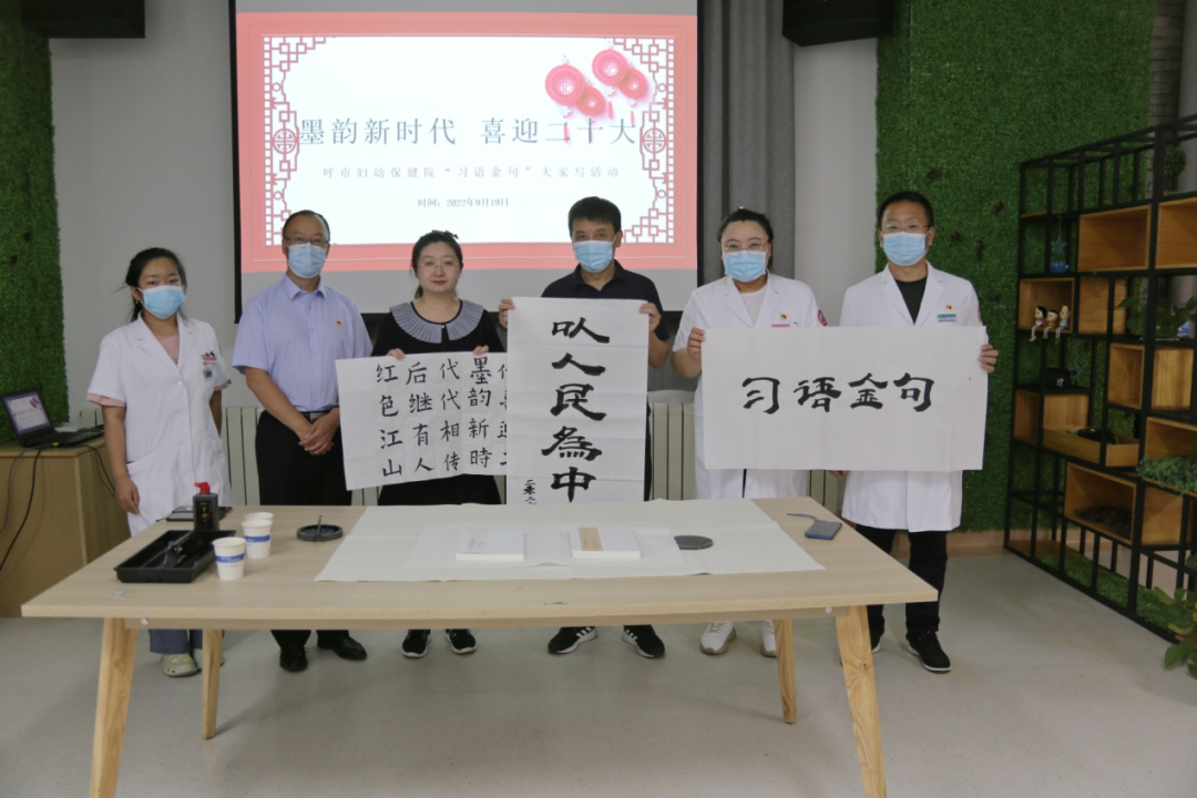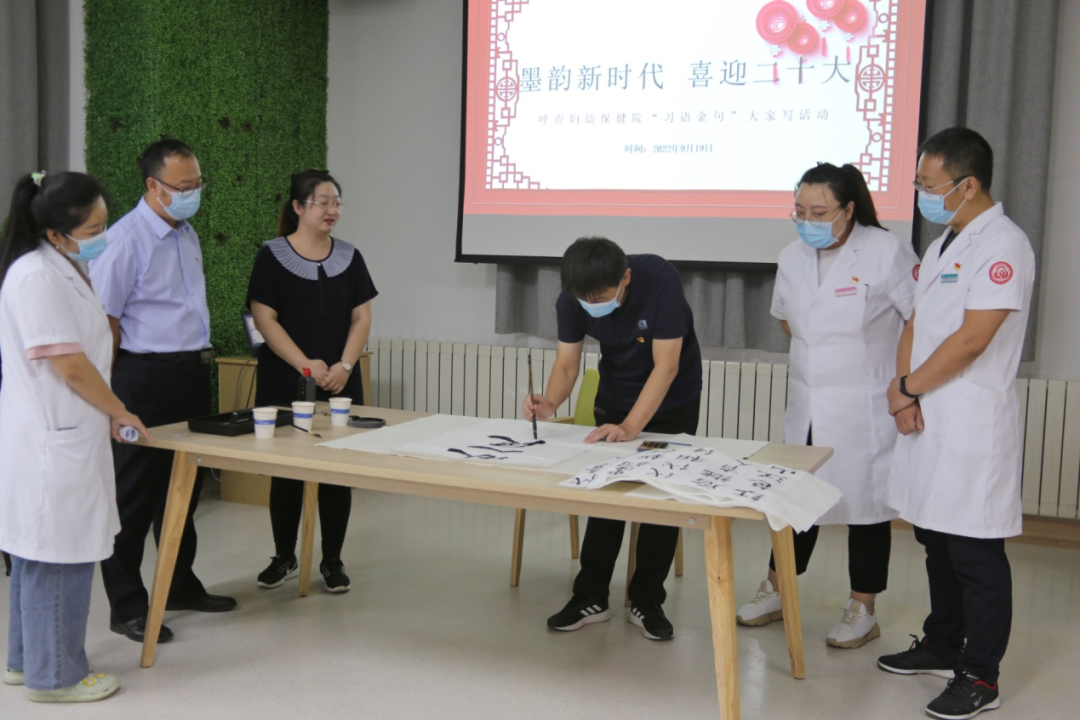为深入学习宣传习近平新时代中国特色社会主义思想,铸牢中华民族共同体意识,推进新时代文明实践志愿服务活动,培育新时代文明新风。9月19日下午,呼和浩特市妇幼保健院工会组织职工开展“墨韵新时代 喜迎二十大‘习语金句’大家写”活动。