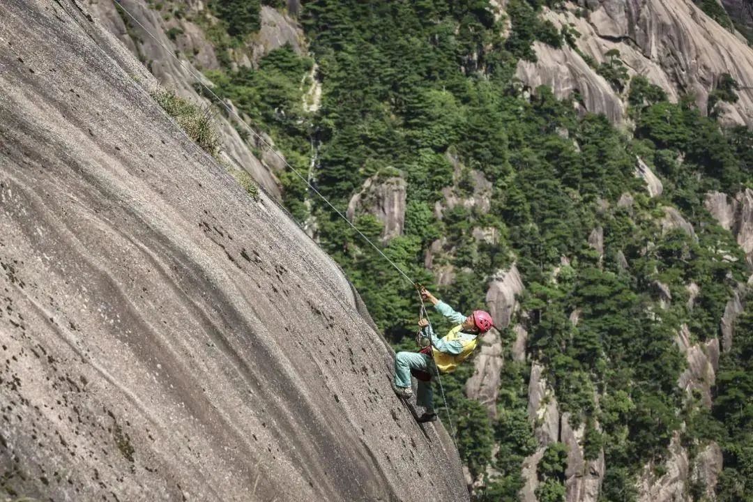 经过专业训练和实地操作之后,李培生对这份工作已是驾轻就熟,凭借一根绳索,在峭壁上行走自如。在旅游旺季,他每天要放绳七八次,上下一趟需要一个小时左右,这对体力和耐力都有着极大的考验。