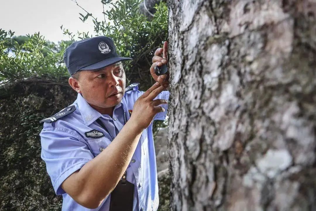 除了观察树皮、梢头、枝丫、冠顶之外,胡晓春每天的巡检细到连松针都不放过。