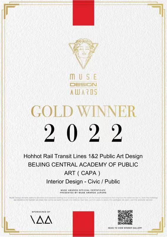 MUSE Design Awards(缪斯设计奖)是全球创意设计领域最具影响力的国际奖项之一,创办于美国纽约,由历史悠久的国际奖项协会International Awards Associates(IAA)主办,旨在培养和推广“设计缪斯”,推动全球设计产业发展更上一层楼。作为极具影响力的国际奖项,缪斯设计奖以严格的评审体系以及高质量的评判标准著称,旨在发掘和彰显建筑、室内、时尚等设计领域的杰出者。本届MUSE设计奖评委团来自全球38个国家的110名各领域专业人士,呼和浩特地铁1、2线从全球100多个国家或地区的6000多份参赛作品中脱颖而出。