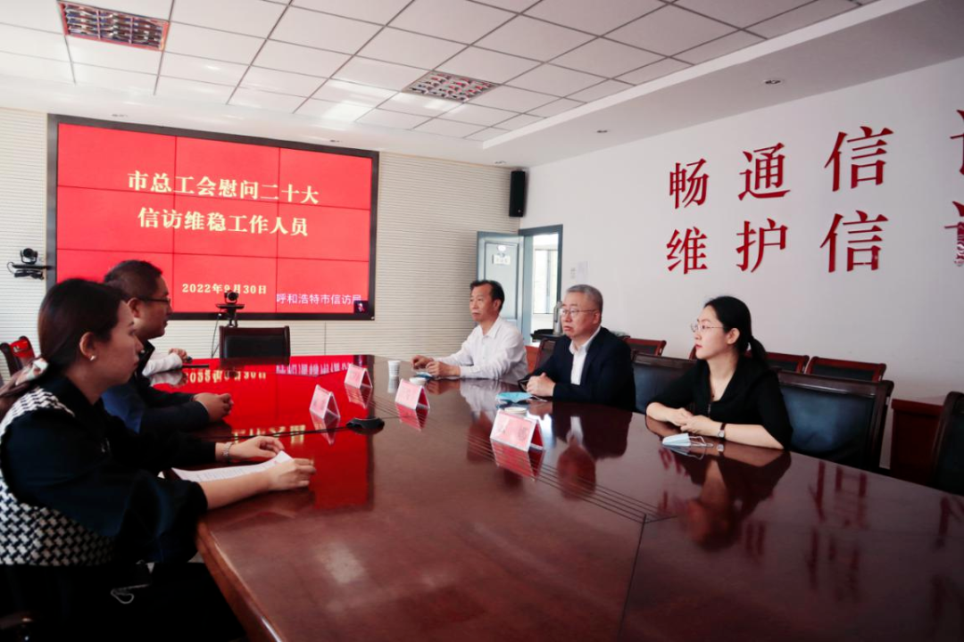 9月30日上午,国庆节到来之际,市总工会党组书记、副主席汪俊亭,党组成员、副主席冀罕钢、云娜一行先后来到市公安局、市信访局对负责“二十大”安保维稳工作的一线干警和信访干部进行慰问,并送去慰问金。自治区公安厅党委委员、副厅长、市政府党组成员、副市长、市公安局党委书记、局长李军,市信访局副局长金雷等接受慰问。