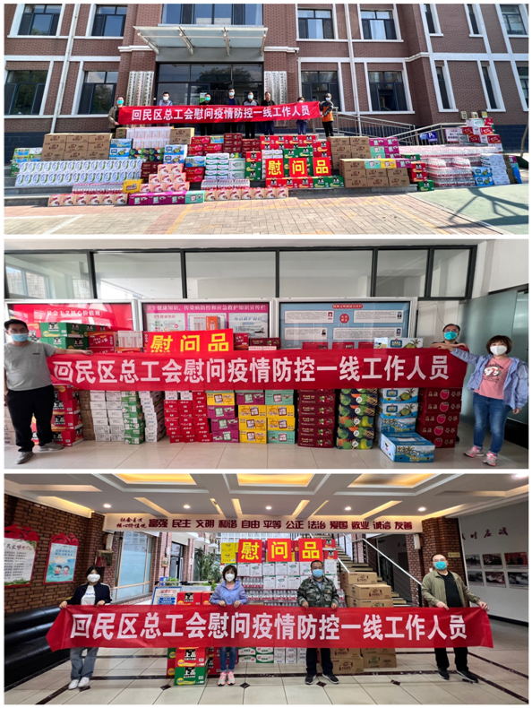 自我市疫情突发以来,回民区总工会根据市总工会和区委、区政府的工作要求,认真落实疫情防控工作安排部署,进一步加强对疫情防控一线工作人员的关心关爱。10月2日-5日,回民区总工会慰问了辖区一镇七办一中心68个社区、回民区疾控中心和G6京藏高速出城口的千余名疫情防控一线工作人员,为他们送去了价值24万余元的慰问食品,把总工会的关怀、温暖送到每一位防疫人员的心坎上,为他们送去“娘家人”的温情问候。