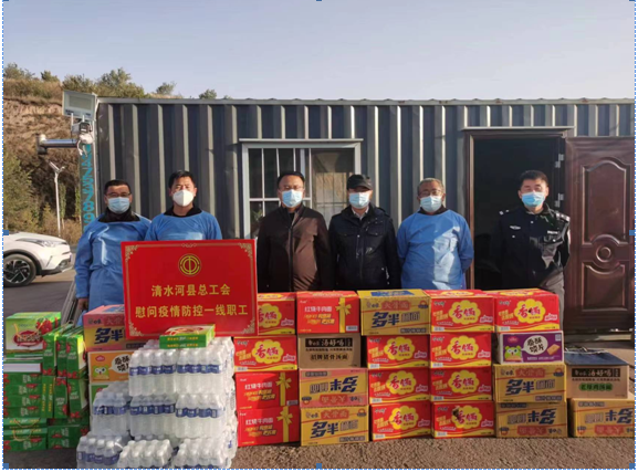 近期,面对繁重复杂的疫情防控形势,清水河县总工会充分发挥工会组织作用,积极配合做好当前疫情防控工作,坚决打赢疫情防控阻击战。10月9日上午,县人大常委会副主任、总工会主席刘在俊,县政府副县长张如刚,县总工会党组书记、常务副主席姜培成一行先后慰问我县卫健委、南园社区、中蒙医院、主要道路设卡点、核酸监测点等坚守抗疫一线的工作人员,并向他们送上方便面、干馍片、果丹皮、山楂片、香肠、矿泉水等慰问物资。把党和政府的关怀、工会组织的关爱送到他们的心坎里。每到一处慰问组都与防疫工作人员亲切交谈,详细询问工作、生活等相关情况,并向他们致以诚挚的问候和衷心的感谢。