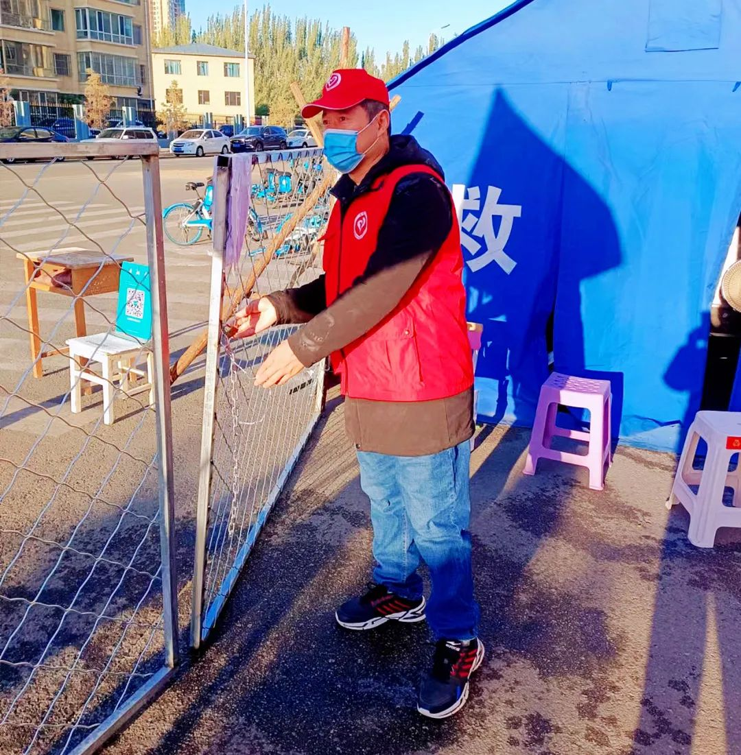 姜庆勇志愿服务所在的小区被一条街道所分隔,分为东区、西区,共有上千户居民,工作人员少,工作强度大。疫情暴发以来,他主要负责对非必要外出居民的劝返工作,向不理解静默封闭管理政策的居民耐心解释,处理居民强行闯卡等突发情况,维持核酸点的正常秩序。
