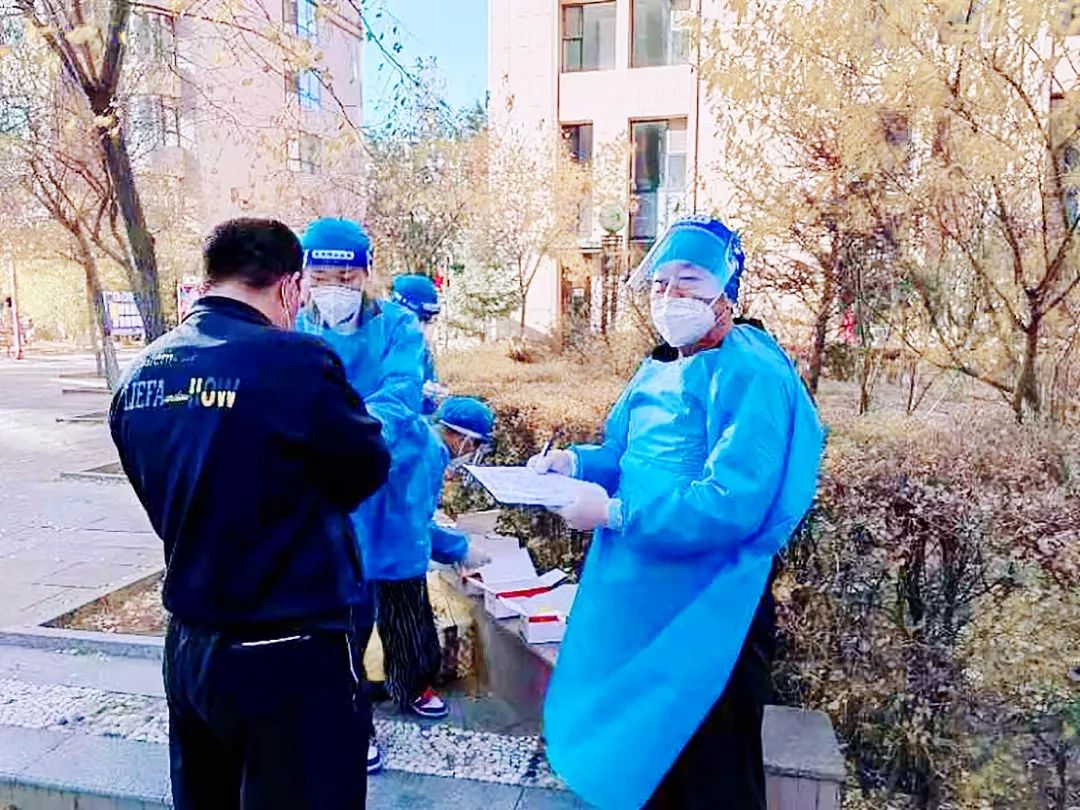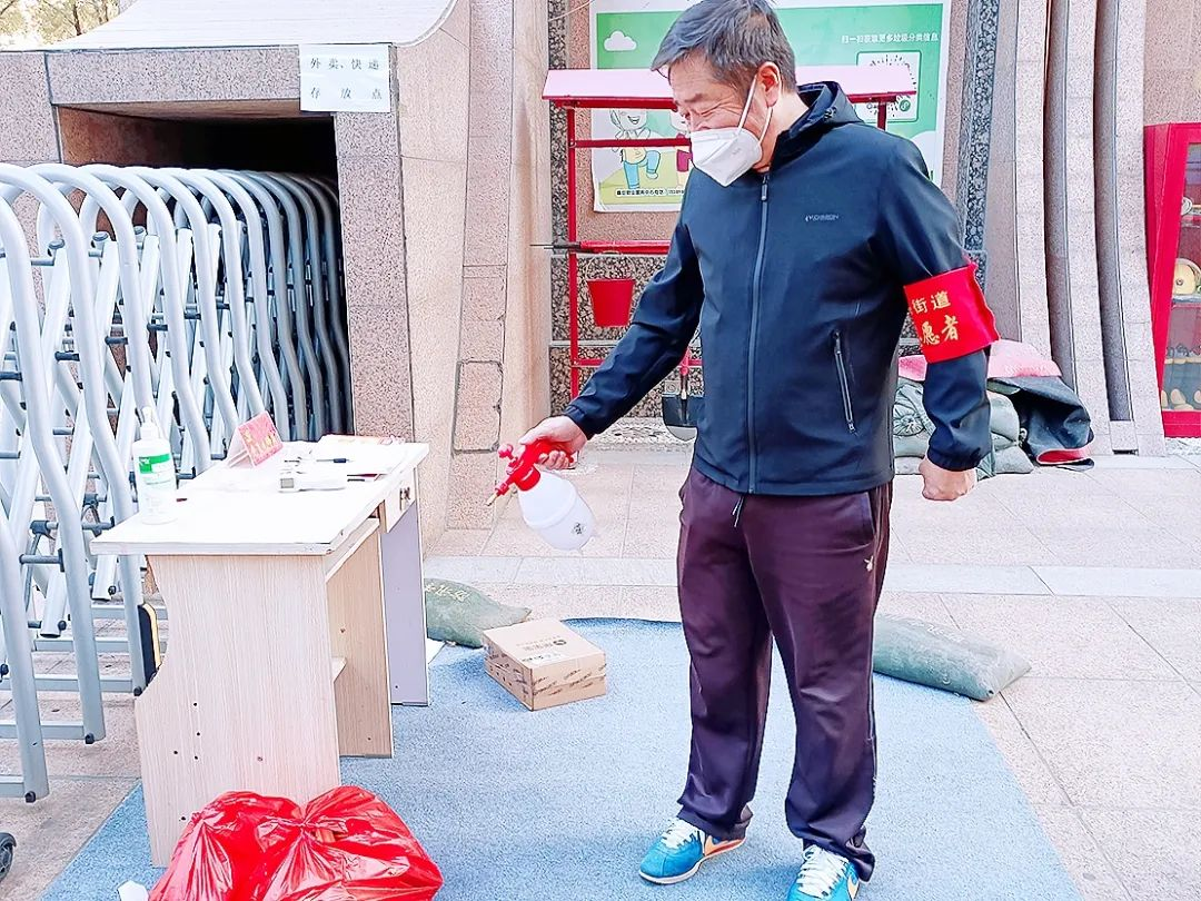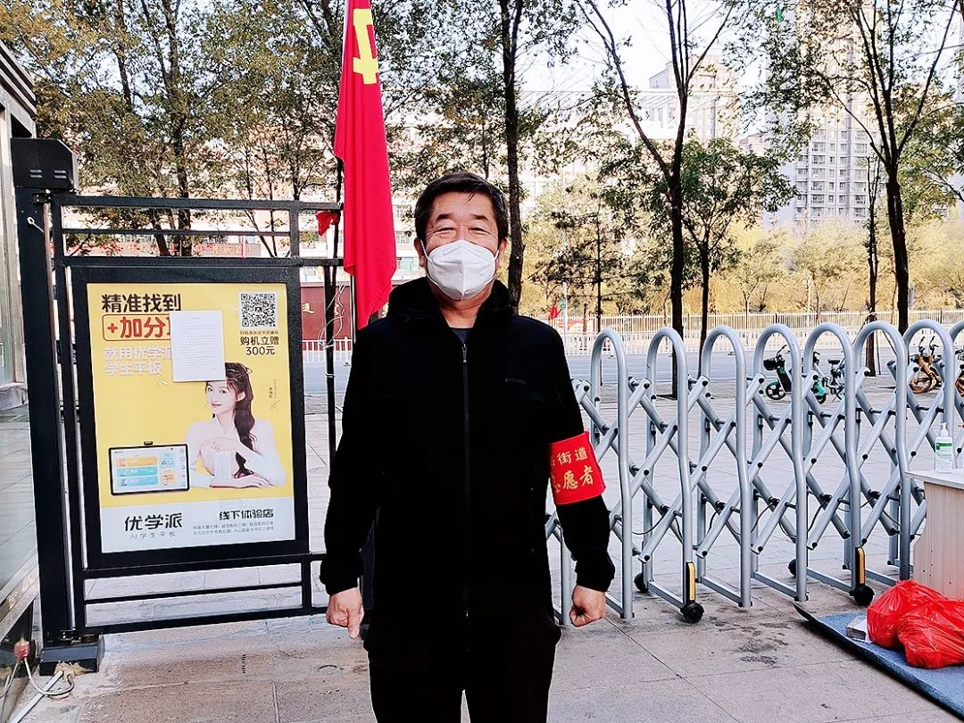 10月1日,石晓智得知呼和浩特市已经开始全员核酸检测,竹园社区核酸检测人员严重短缺,作为一名老党员和自治区级劳动模范,他积极响应各级政府及呼和浩特市总工会的号召,第一时间成为了先锋志愿者,参与到竹园小区北区核酸检测志愿服务工作中。竹园小区北区共有7栋小高层住宅楼,580户住户,1009名居民。他每天凌晨5点起床,洗漱完毕后,早点都来不及吃就准时上岗,和社区工作者、医护人员及其他志愿者一起,进行核酸检测前准备工作,穿防护服、进行场地消毒、悬挂党旗,从凌晨6点一直忙到上午11点小区核酸检测结束。