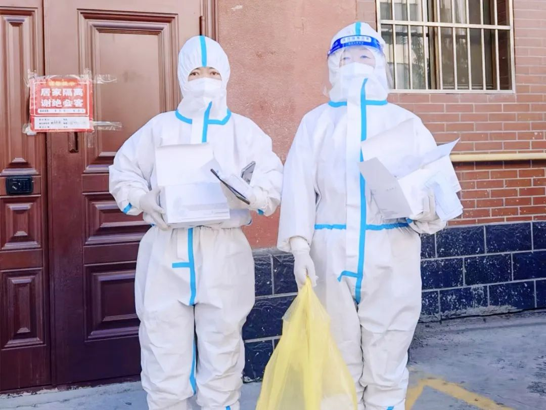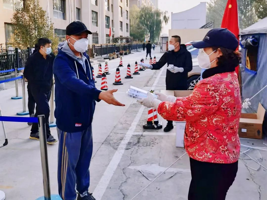 作为该小区的党员志愿者,她从10月8日到社区报道后,就一直负责该小区核酸检测秩序维持的工作。该小区封控静默不久,就出现了阳性确诊病例。其中小区内B1号楼2单元被划定为高风险区,该栋楼其余六个单元风险等级上调至中风险,为了居民安全,志愿者需为居民进行上门核酸检测。该楼为六层无电梯楼,面对繁重的工作,她主动承担了三个单元的检测任务,协助医护人员为群众上门做核酸。六层楼有三十多户居民、总计六十二口人。她身穿厚厚的防护服来回奔波,但她并没有觉得辛苦,她说:“作为一名共产党员,党和国家培养我们这么多年,这是我们应该做的,小区里的其它党员和志愿者都很辛苦也很尽责,奋战在前线的医护人员比我更辛劳,我这点工作真是微不足道。”