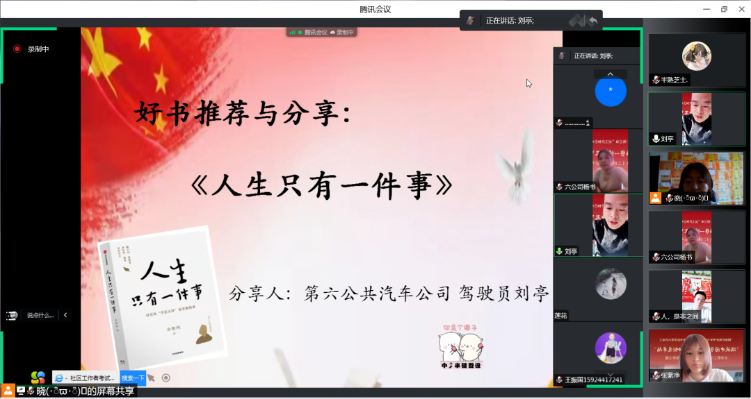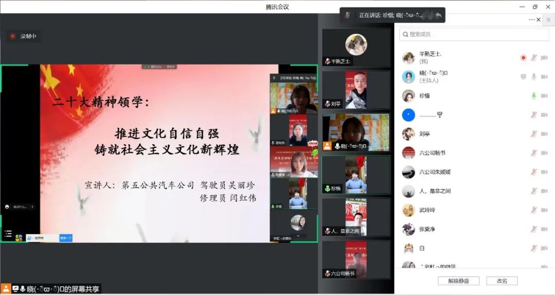 11月7日,首场线上读书分享会在呼和浩特市公共交通有限公司第五、第六公共汽车公司职工中展开,共有15名职工参加活动。读书分享活动围绕宣讲党二十大精神、感悟分享、好书分享等环节展开。参加活动的职工结合自身岗位谈认识、谈体会,发言或长或短,但都饱含热情,激情昂扬,展现出首府职工的良好风采,体现了学思用贯通、知信行统一的务实精神。大家表示:在党的二十大精神引领下,决心在岗位上发挥出更大的主力军力量,为建设“美丽青城 草原都市”作出应有的贡献。