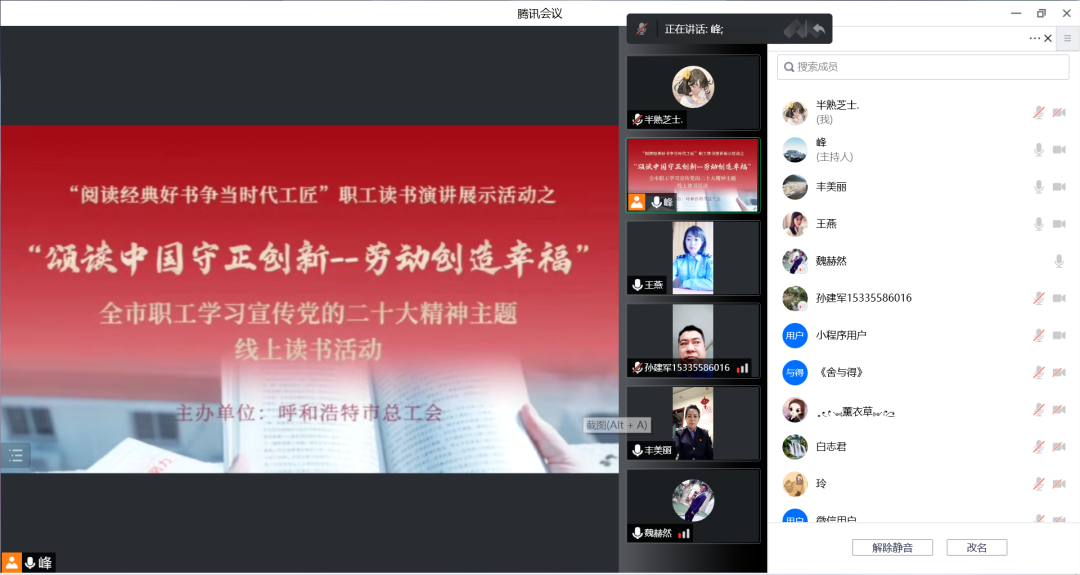 为学习贯彻党的二十大精神,加强职工思想政治引领,引领广大职工做建功新时代的主力军,同时丰富疫情防控期间因承担保供任务在单位留守的职工的业余文化生活。近日,呼和浩特市总工会组织呼和浩特市公共交通有限公司第四、第七公共汽车公司、西部天然气管道运行公司职工开展“阅读经典好书 争当时代工匠”职工读书演讲展示活动之“颂读中国 守正创新”主题读书活动暨学习贯彻党的二十大精神线上读书活动。