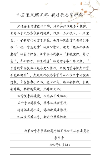 供稿:内蒙古中车长客轨道车辆有限公司工会委员会 李东升