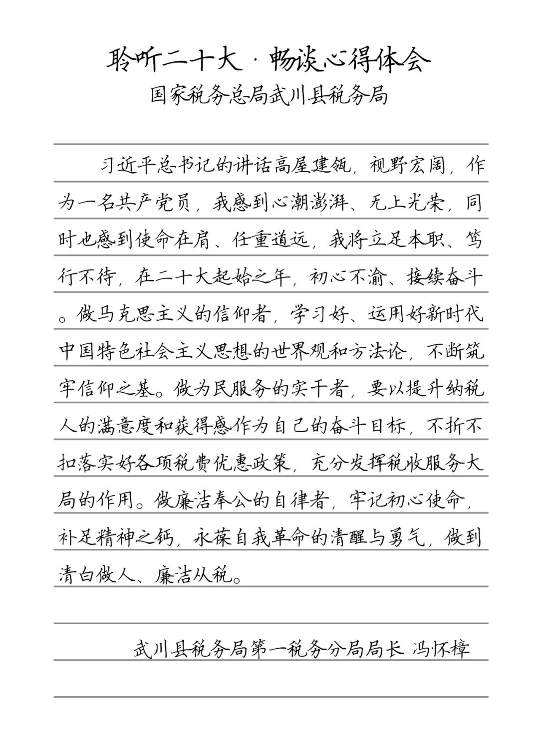 聆听二十大·畅谈心得体会 武川县税务局第一税务分局局长 冯怀樟