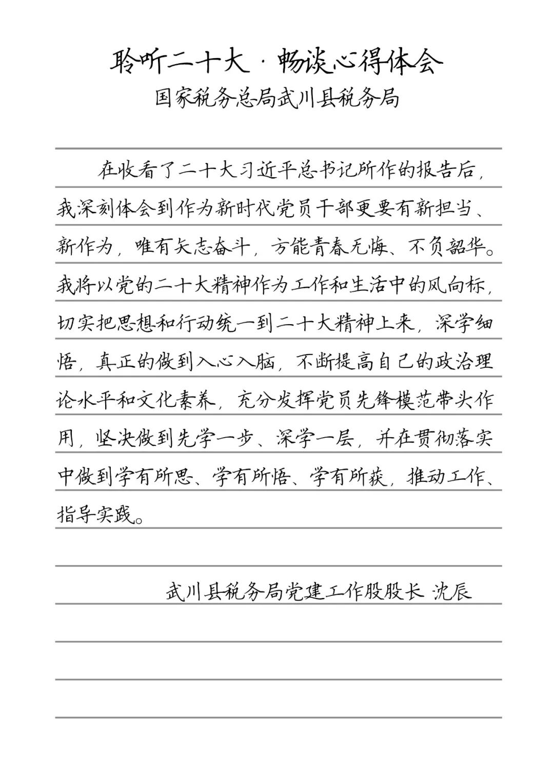 聆听二十大·畅谈心得体会 武川县税务局党建工作股股长 沈辰