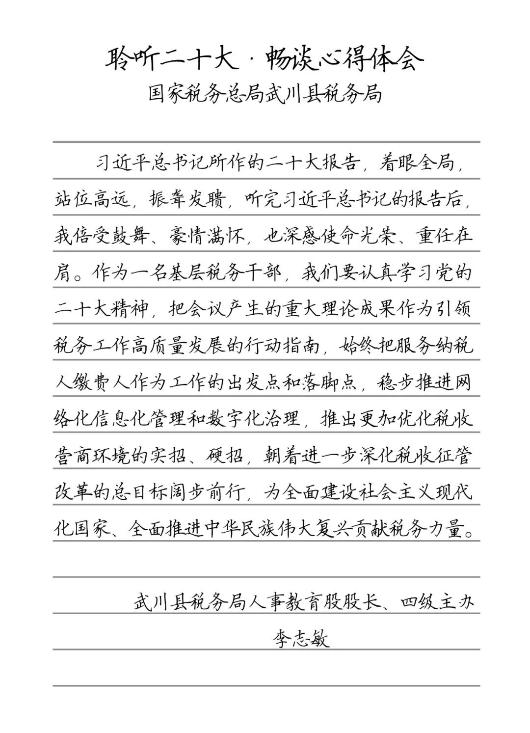 聆听二十大·畅谈心得体会 武川县税务局人事教育股股长、四级主办 李志敏