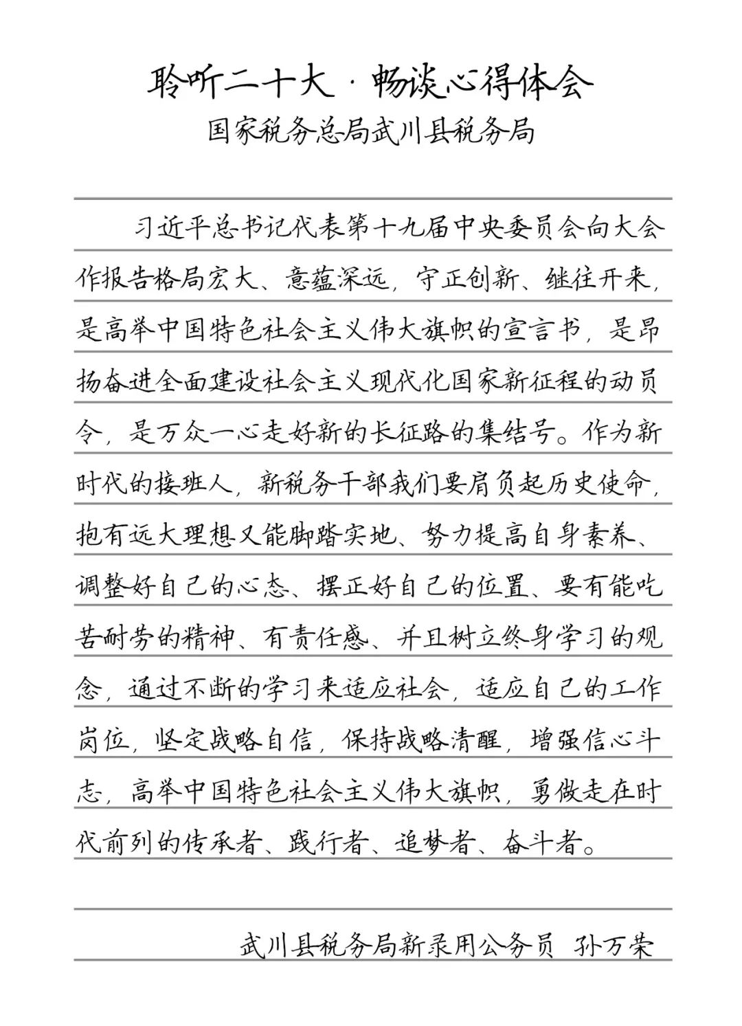 聆听二十大·畅谈心得体会 武川县税务局新录用公务员 孙万荣