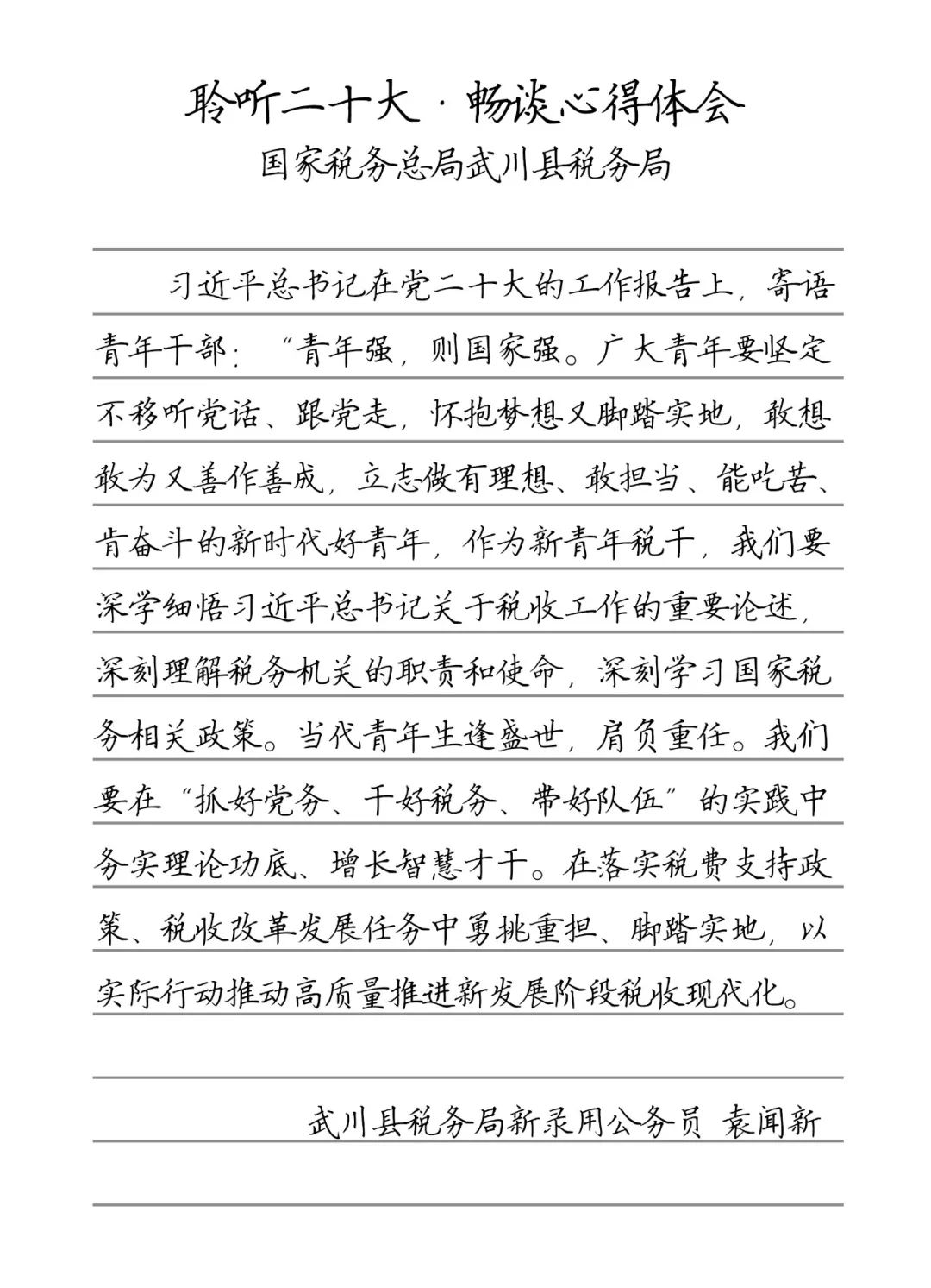 聆听二十大·畅谈心得体会 武川县税务局新录用公务员 袁闻新