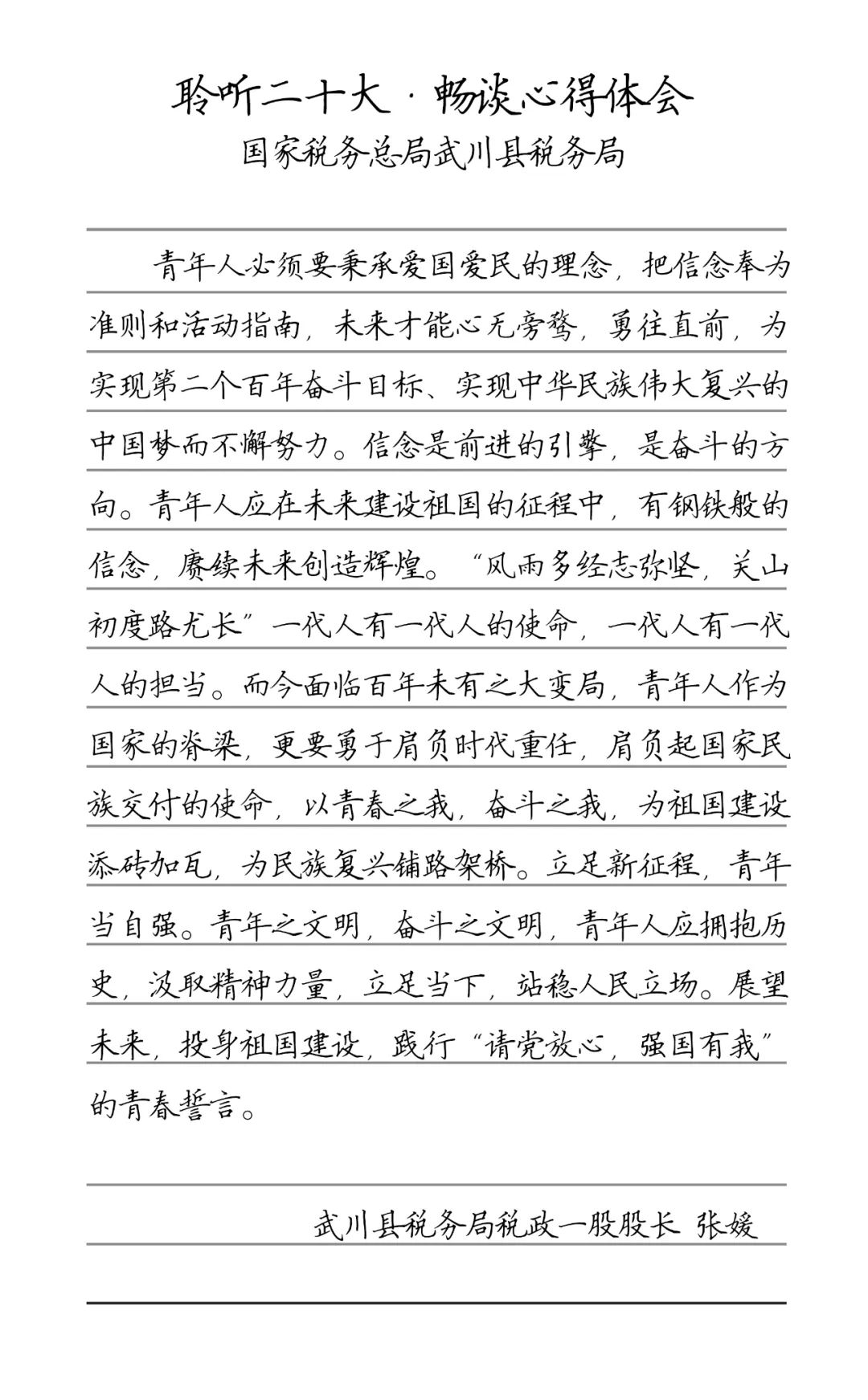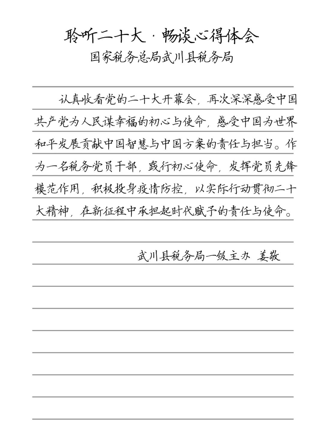 聆听二十大·畅谈心得体会 武川县税务局一级主办 姜敬