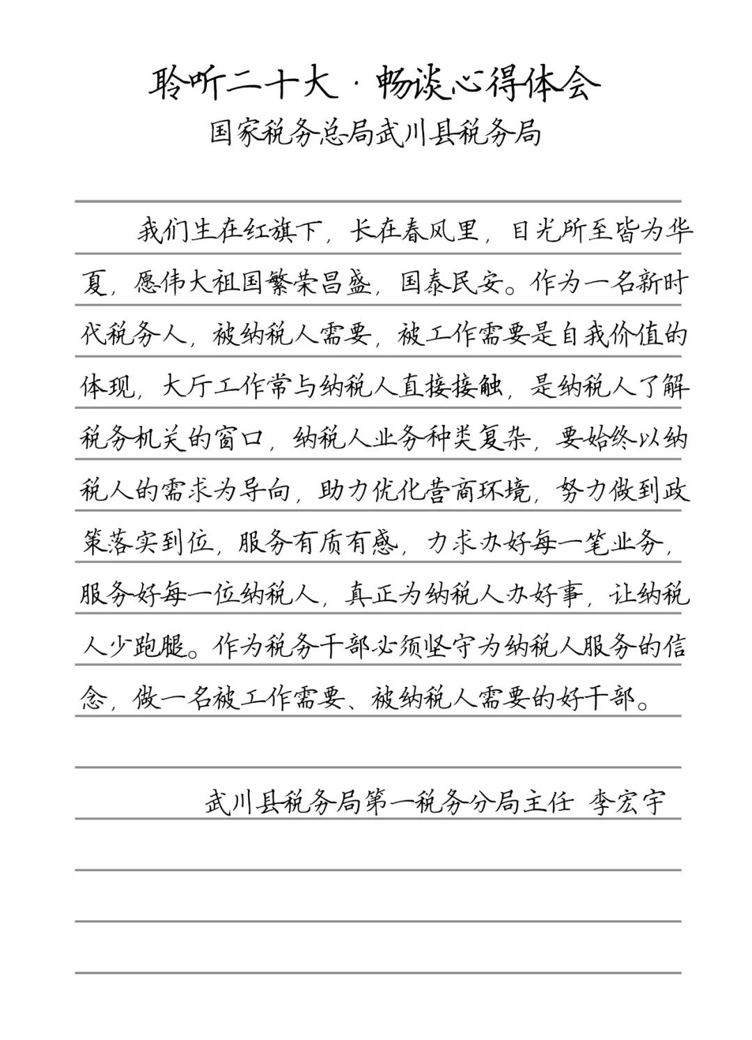聆听二十大·畅谈心得体会 武川县税务局第一税务分局主任 李宏宇