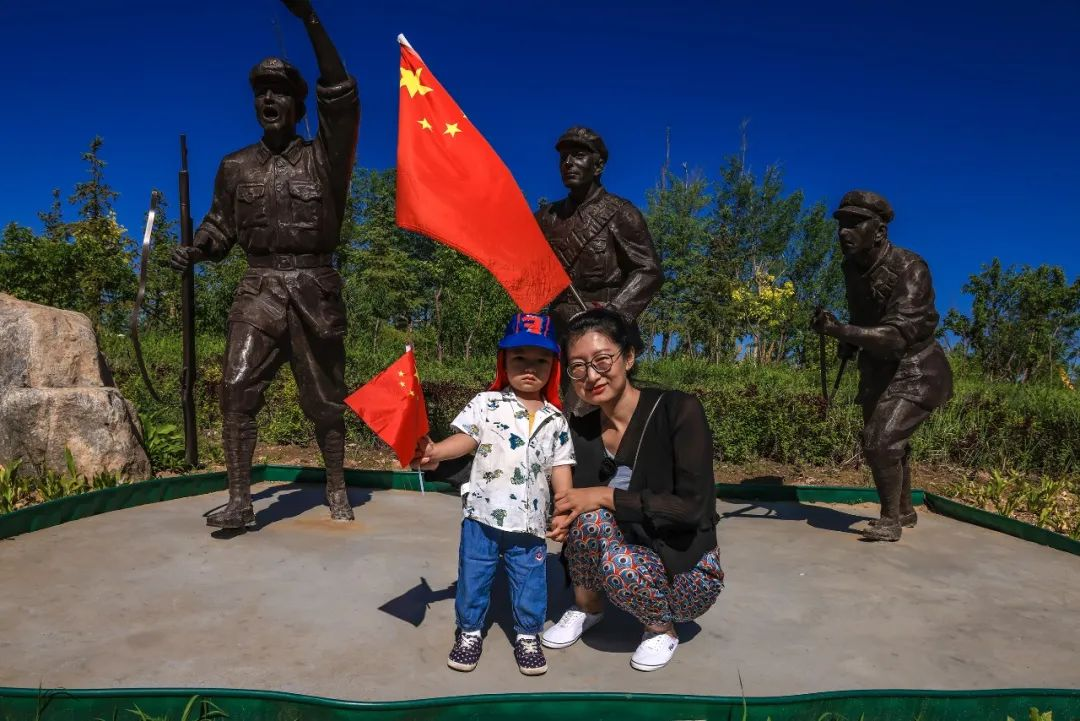 作品说明:于2021年6月27日拍摄于呼和浩特市大青山红色文化公园。采风时遇到家长和孩子手持红旗对先烈雕塑的崇敬并进行合影的情景一股暖流涌上心头即刻抓拍下此照片。