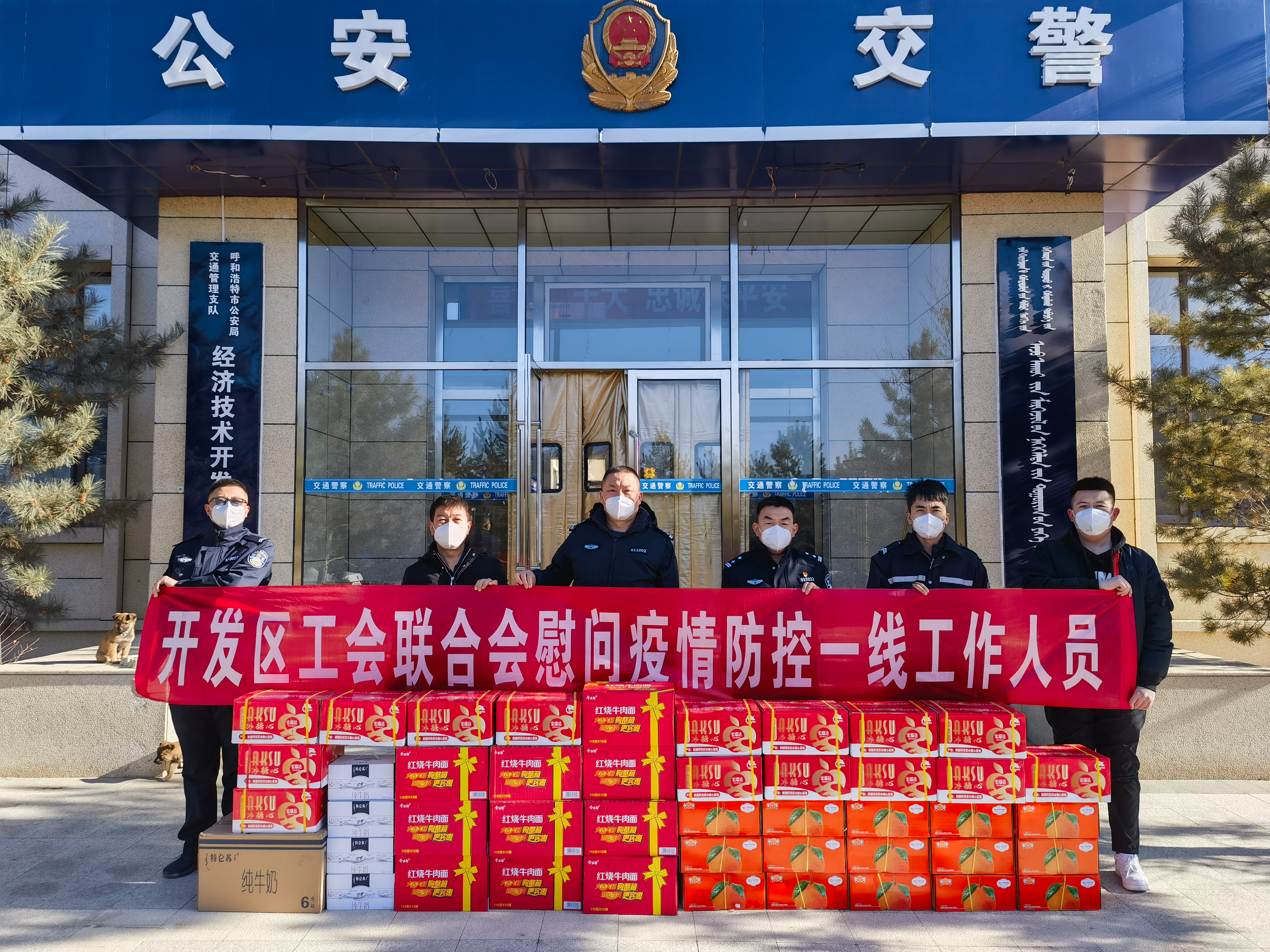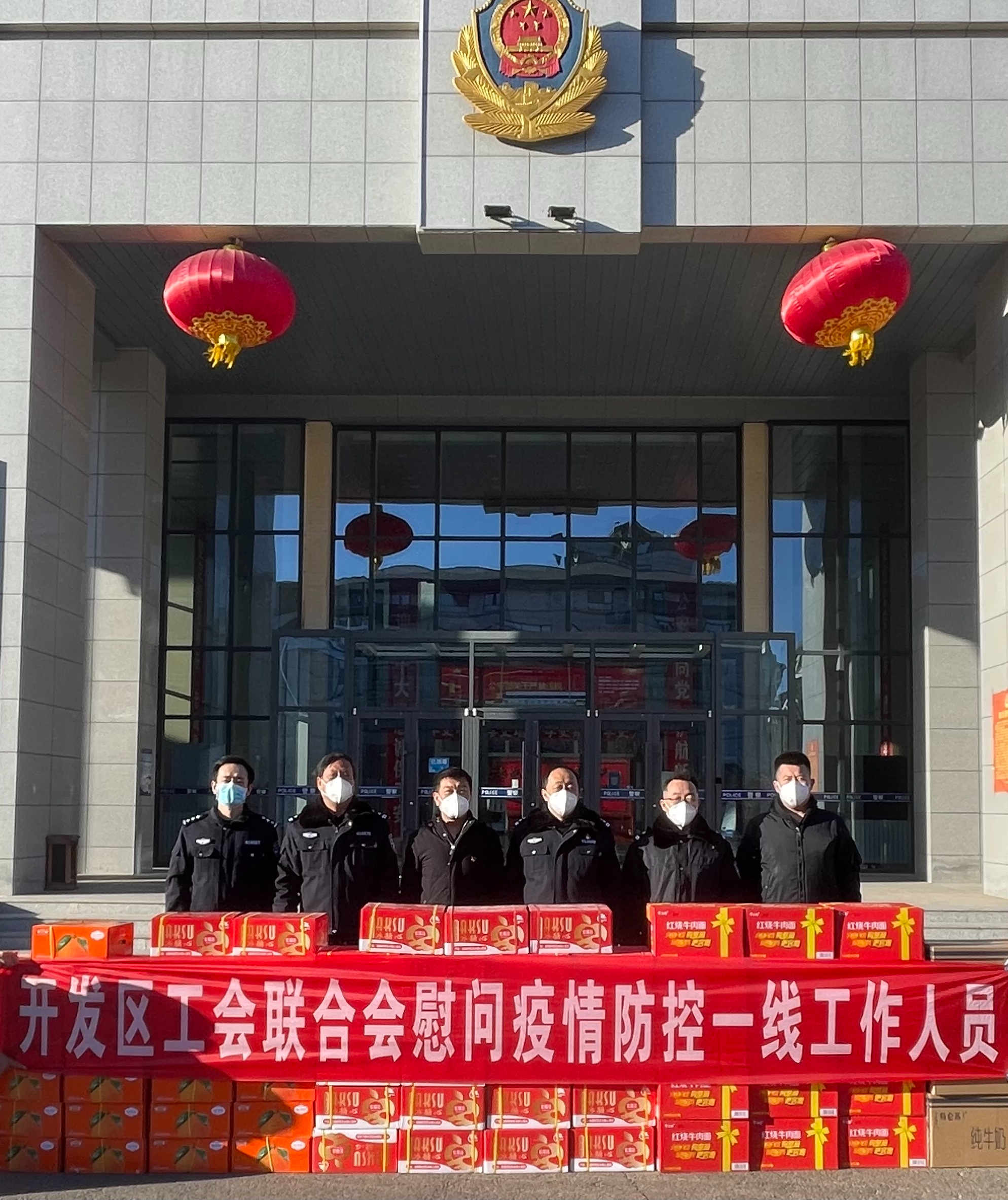 12月13日上午,由开发区工会联合会副主席刘浩波带队,分别赴开发区公安分局、开发区交警大队,为参加疫情防控的一线民警送去水果、方便食品等物资。慰问小组与抗疫一线人员亲切交谈,对他们为筑牢疫情防控防线、保护人民生命安全付出的艰苦努力和作出的重要贡献表示衷心的感谢。每一名一线民警的背后都有一个默默付出、无私奉献的感人故事,大家用实际行动诠释了全心全意为人民服务的根本宗旨,让党旗在疫情防控的战场上高高飘扬,让党徽和警徽在大仗硬仗中熠熠生辉!