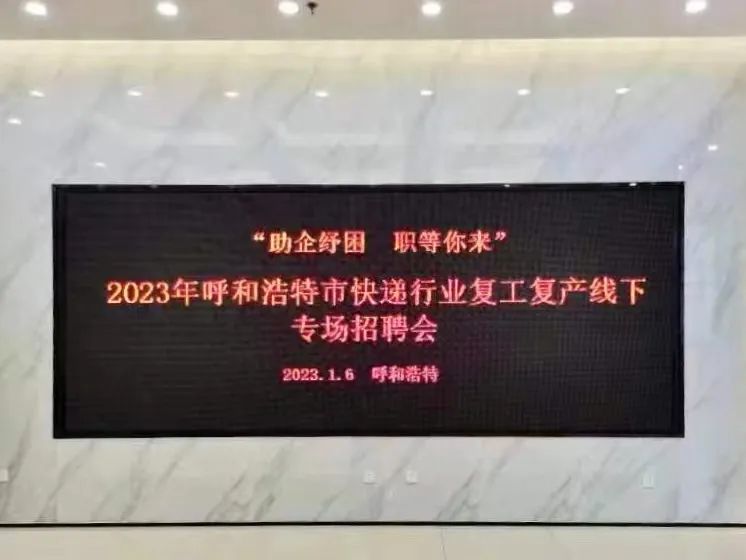 岁末年初,为更好助力各行各业复工复产,促进求职招聘供需双方有序对接,充分发挥工会组织职能作用,帮助广大新就业形态群体、就业困难群体等实现就业。1月6日,由呼和浩特市人力资源和社会保障局、呼和浩特市总工会主办,呼和浩特市人力资源市场服务中心承办的“助企纾困 职等你来”2023年呼和浩特市快递行业复工复产线下专场招聘会在呼和浩特人力资源服务产业园三楼举办。