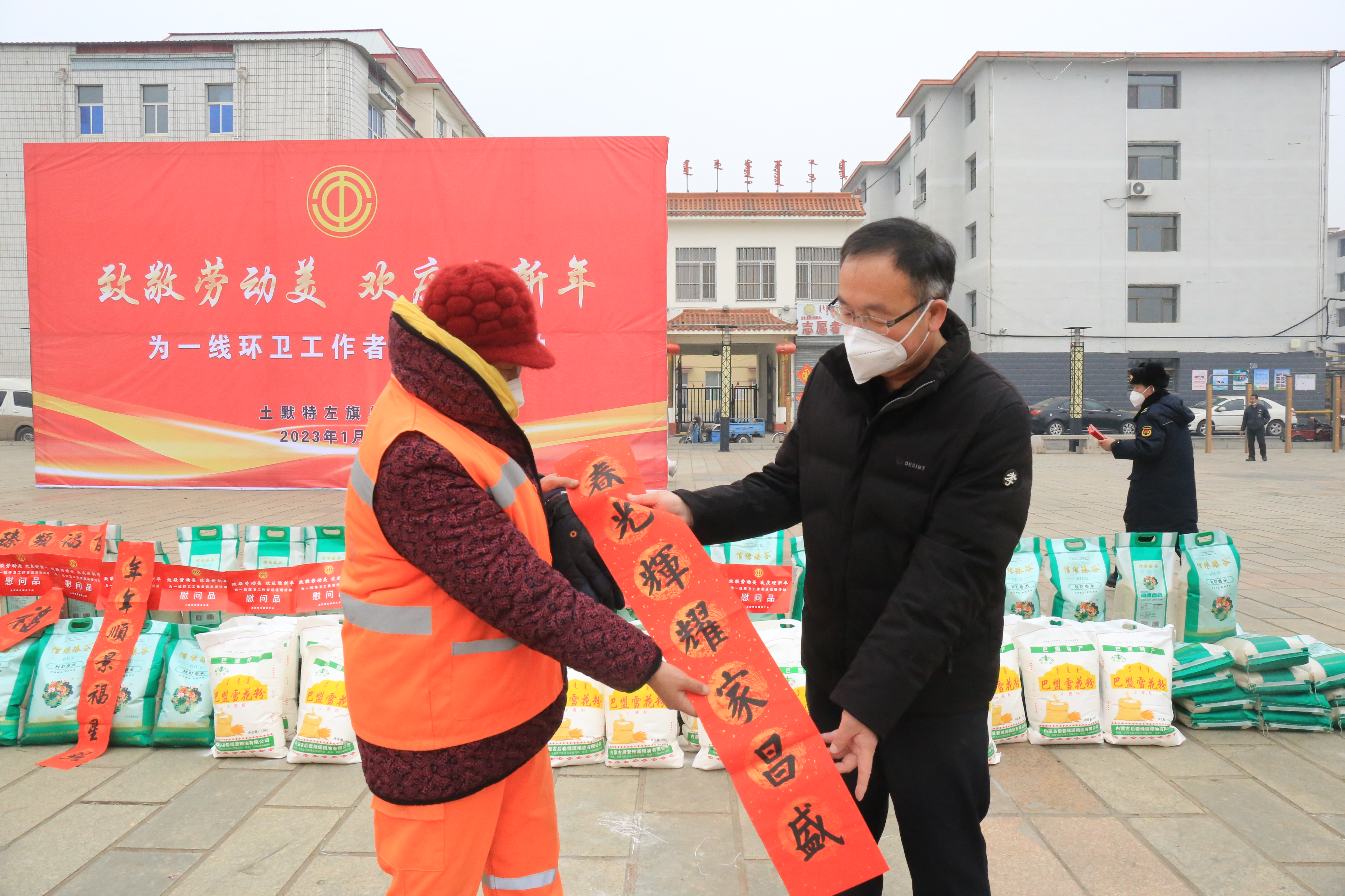为深入贯彻落实党的二十大精神,持续营造关怀关心关爱一线环卫工作者的良好氛围。1月12日,土左旗总工会在原政府广场开展“致敬劳动美 欢庆迎新年”为一线环卫工作者送温暖活动。旗总工会党组书记、常务副主席靳小林,旗城市管理综合行政执法大队党总支书记、大队长宝音,副大队长杨帆出席活动,旗总工会、旗城管大队部分工作人员及200名环卫工人代表参加活动。